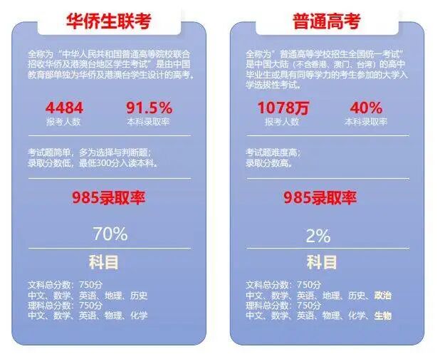 比如拥有香港身份的子女,不需要跟大陆一千多万的考生去挤高考这条独木桥,他们可以参加一个叫华侨生联考的考试。