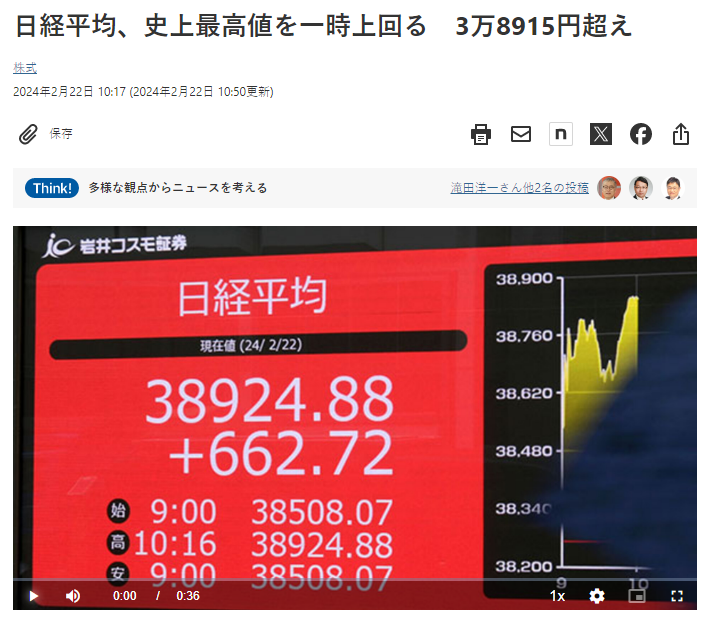 2月22日,根据日本媒体报道,东京股市日经平均指数反弹,暂时超越1989年底泡沫经济顶峰时期创下的历史新高38957点。