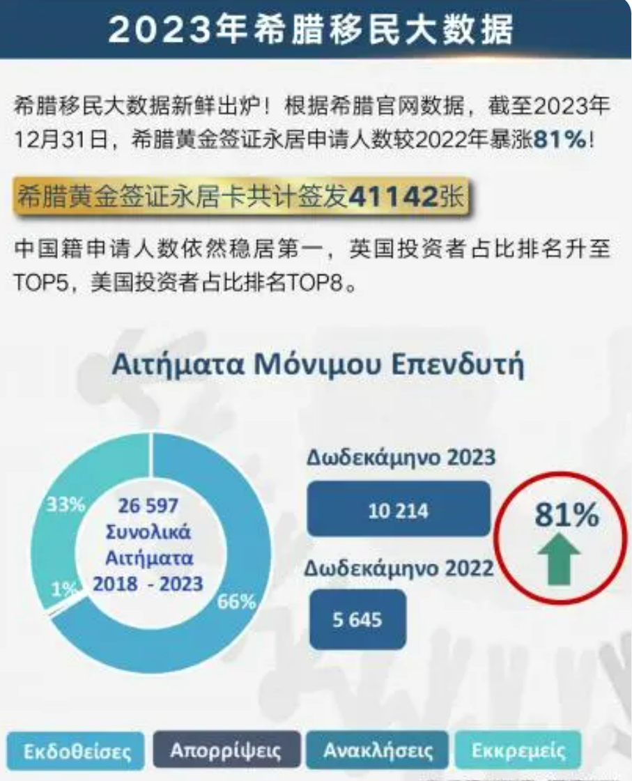 在刚刚过去的2023年,也就是宣布涨价的一年当中,希腊移民局一共收到了10214份申请,同比去年增长高达81%,非常夸张。