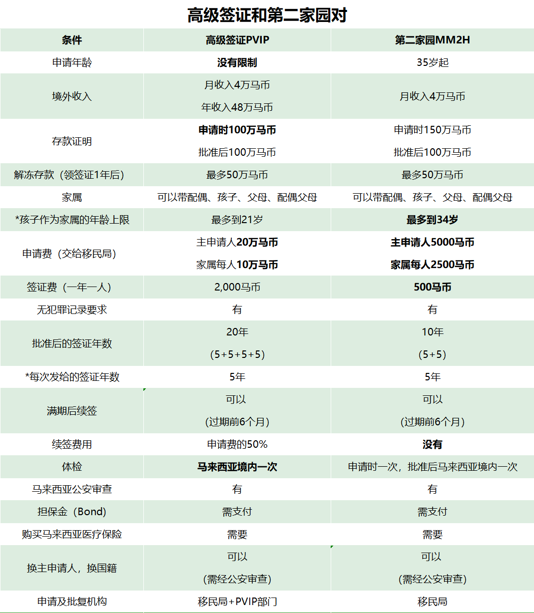 最后就是续签成本,第二家园续签是不花什么钱的,保持存款就好,但高级签证续签的花费是首次申请的50%,也就是差不多每五年就要花25万马币续签,还不算其他家庭成员,所以这个高端签证的费用真的高的吓人!大家可以对比这两个项目的费用明细,可以自己感觉一下马来西亚政府这个新项目的成本!