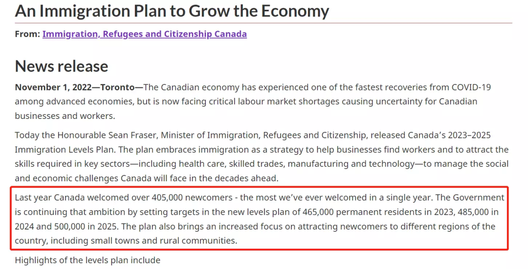 对咱普通人来说,移民加拿大最好的机会来了!2022年11月1日,加拿大移民部公布了一份重磅文件,《2023年-2025年移民计划》,这份计划揭示了未来3年里加拿大的移民配额,分别在2023年引入46.5万新移民,2024年增加到48.5万,最后2025年,进一步上升到50万新移民,三年共计接纳145万新移民!