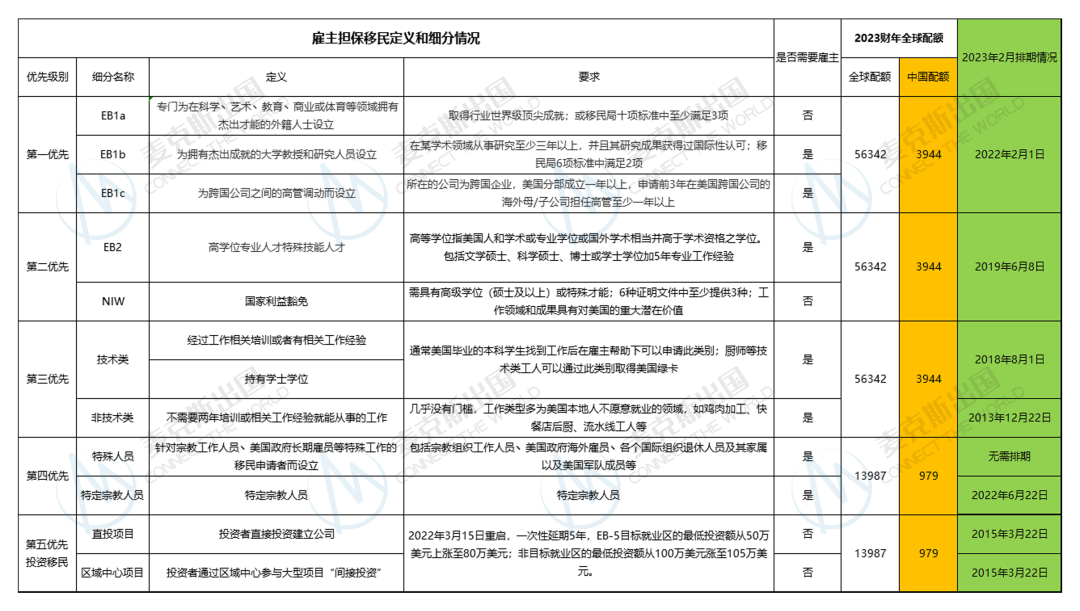 EB是Employment-Based的简称,可以理解成“基于劳动关系”,也就是说,凡是以EB开头的移民类别,都基本和人才、雇主、就业相关。