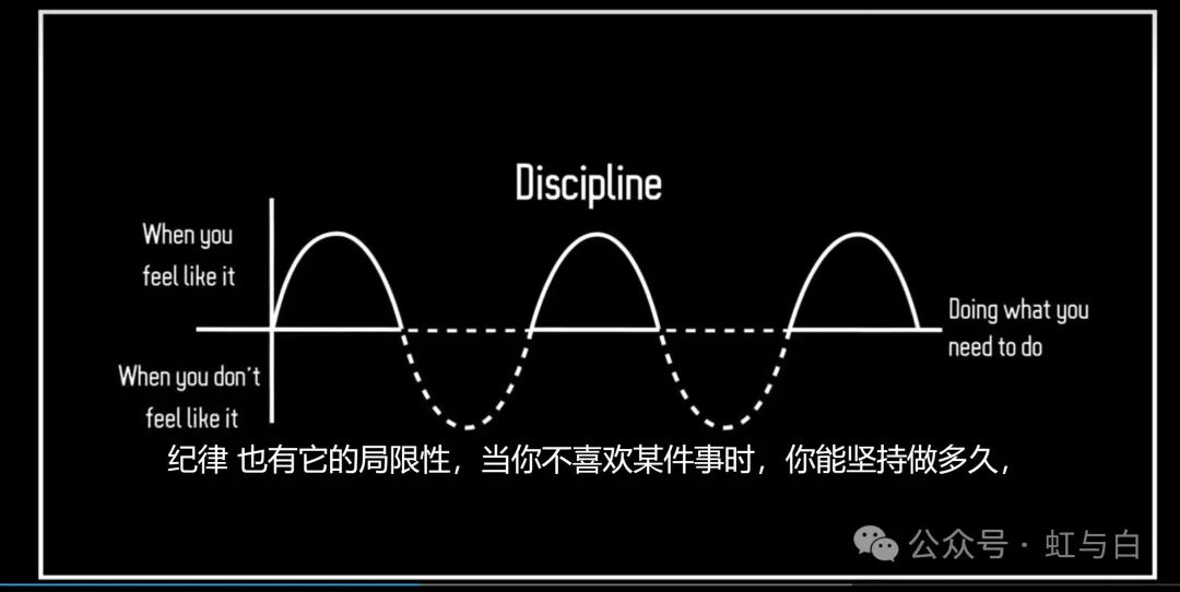 当你没有动力的时候,你可以依靠自律,当你有动力的时候,你甚至不需要使用自律。但是,大多数人忽视了,自律也有其限制。你能坚持多久做你不想做的事情呢?