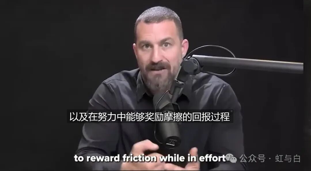 我回忆起大学时期,只是感觉想从书桌前起来,但还是强迫自己学习。随着时间的推移,你会发现,你可以从你所面临的摩擦和挑战中引发多巴胺的释放。如果你只关注最后的目标,你就会消除生成那些电路和在努力中奖励摩擦的过程的能力。