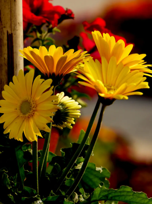 非洲菊喜欢阳光充足的环境,冬季室内养护应摆放在南阳台,让其接受充足的阳光照射。春秋冬三季最好能接受全日照,夏季则应适当遮阴。光照不足时,非洲菊会生长瘦弱,开花减少。