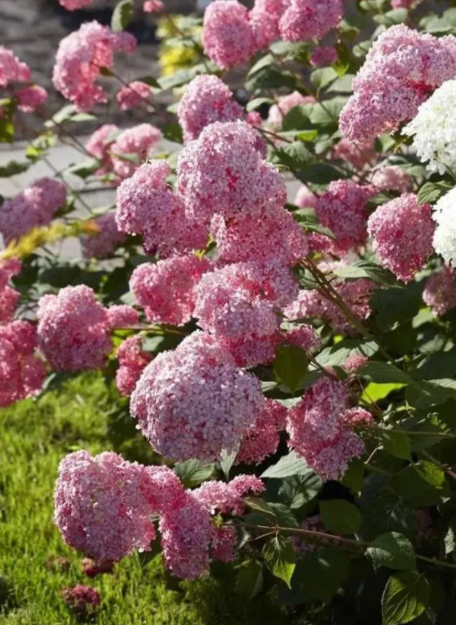 乔木绣球的代表品种有“贝拉安娜”、“粉色贝拉安娜”、”无敌贝拉安娜",近年又新引进了,乔木绣球“泡泡糖”,其花为粉红色,表现比粉色贝拉安娜更加优秀。