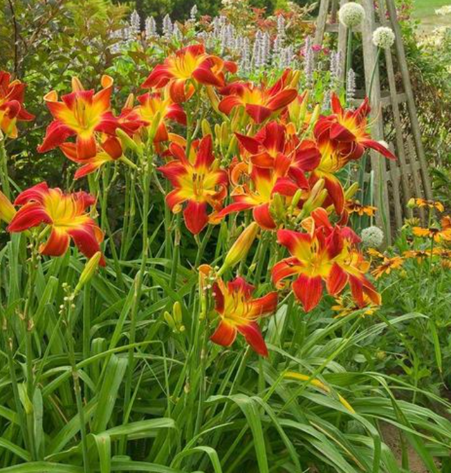 大花萱草非常适合用于花境搭配,因为它的主花期是在夏季,正好可以弥补其他花卉不开花的缺憾。地栽大花萱草建议种植于光照相对充足些的位置,或者种植于疏林下也可以。大花萱草对土壤不挑,只要不是过于碱性的土壤,或砂砾过多的土壤,都是可以直接地栽的。