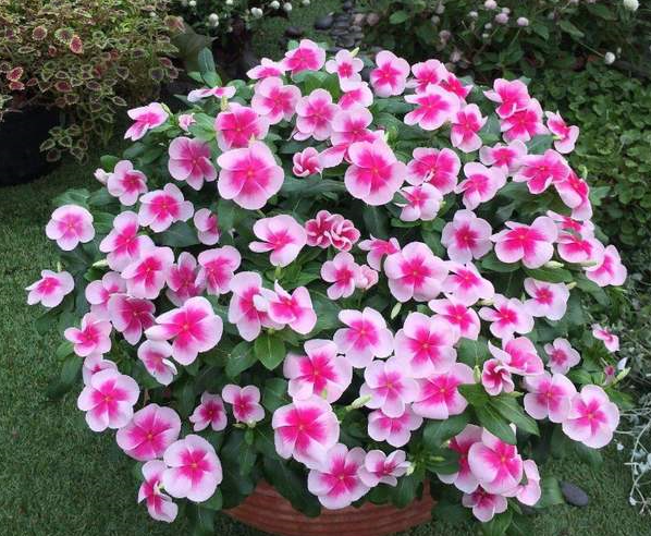 长春花很适合地栽片植,也同样适合盆栽观赏,地栽时对土壤要求不高,盆栽养护时,则建议使用疏松透气的盆土,因为盆栽需要反复浇水,疏松透气的土壤不易板结,管理更简单一些。