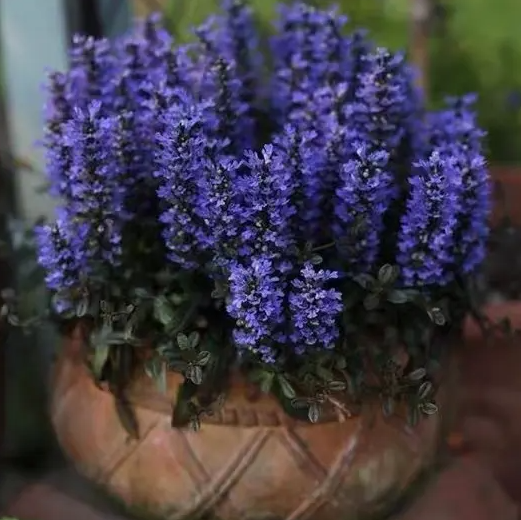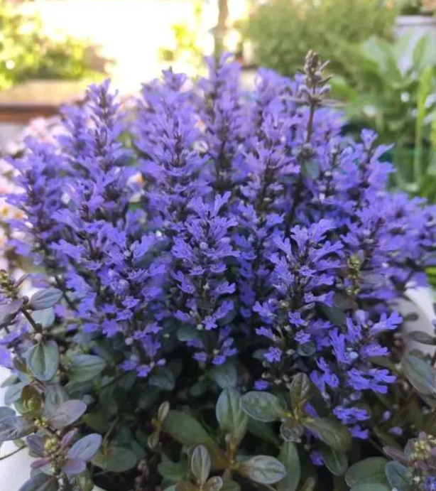 花园里光照不好的位置,就种一片多花筋骨草吧,它不仅耐寒、耐阴,还皮实好养,植株开花高度一般只有20cm左右,非常适合做地被开花植物,和盆栽养护,不仅开花多而且花期也长。