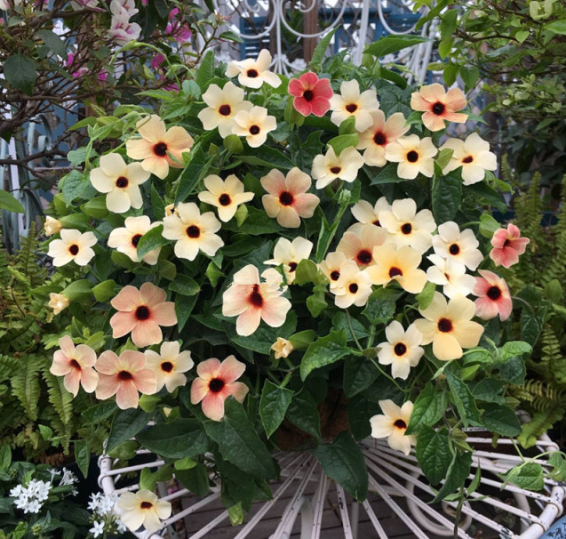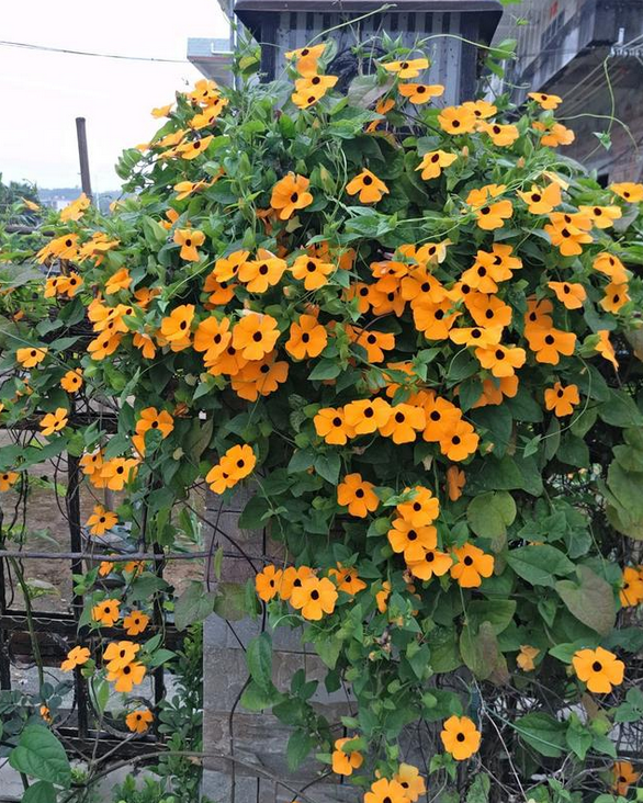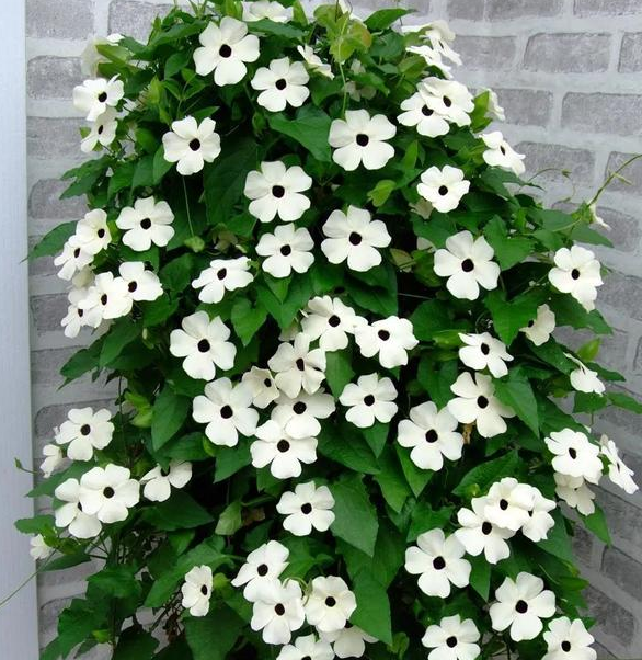 喜欢花墙的小伙伴,大多会选择养月季、铁线莲,但月季病虫害多,铁线莲一到夏天就休眠,半死不活,尤其是在南方地区,很难开出花强的效果。蓝妖推荐您不妨试试黑眼苏珊,它不仅长势快皮实好养,而且花量大,在南方地区更加可以四季开花。
