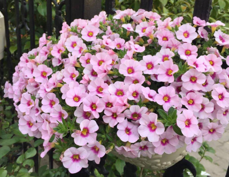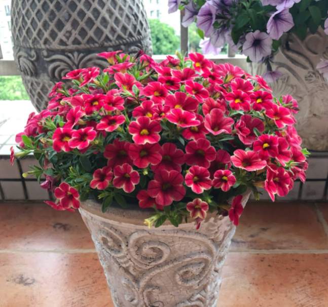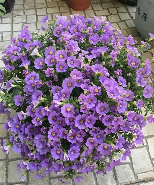 要说什么花能四季常开,好养活、花量大,能轻松开爆盆,那当然要说舞春花了。舞春花也叫做百万小玲,它是小花矮牵牛属植物,多年生草本,枝条具有蔓性,自然分枝性很好,植株高度一般在20cm左右,花色丰富,花期春夏秋,冬季保持温暖也可以持续开花。
