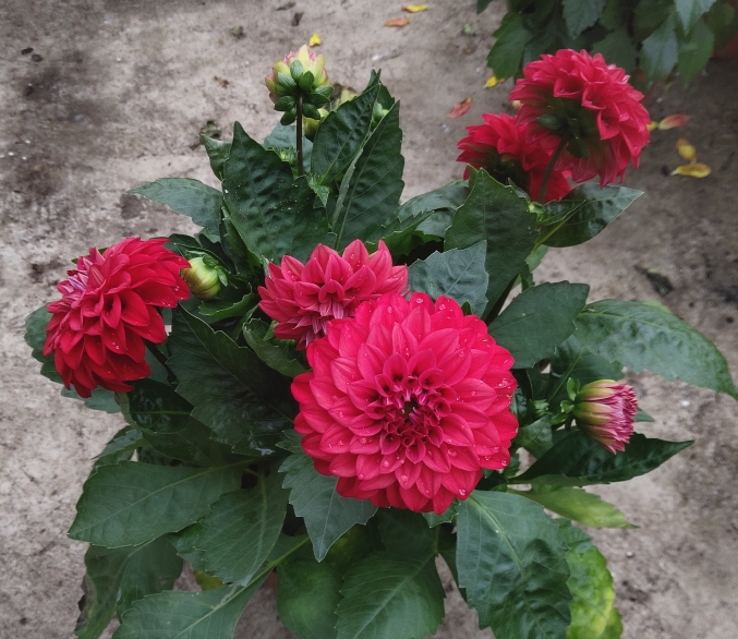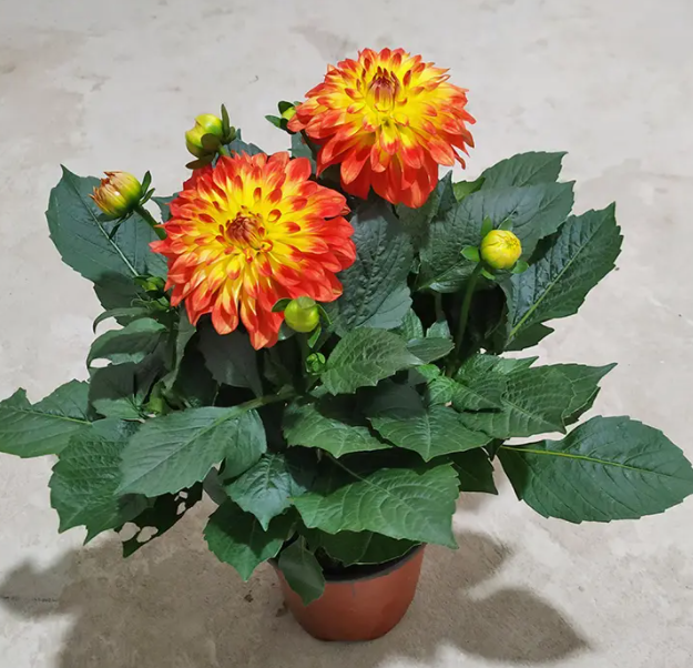 盆栽的大丽花,原盆都是比较小的,咱们收到之后,应该尽快更换一个大1-2号的花盆。因为育苗的管理,肥水非常勤快,盆小干的快,有利于肥水管理,而咱们家庭养护,往往肥水频率跟不上,盆太小容易缺水缺肥。