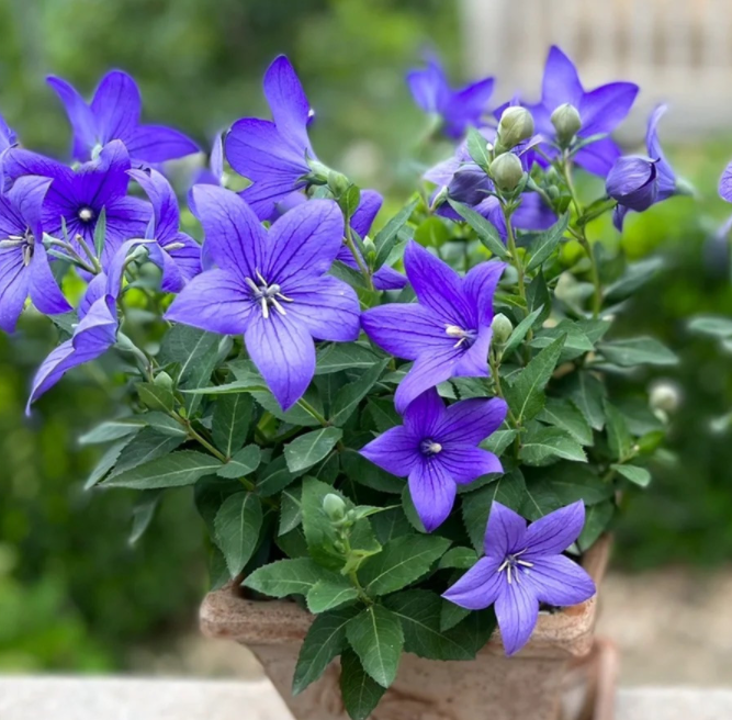 如中华桔梗花量比较少,新芽在生长的时候,建议修剪重新长,或者追肥以生长通用肥为主,促进更多新芽萌发,新枝越多花开越多哦。中华桔梗不耐积水,平时浇水要坚持干透浇透,不能出现盆土积水的情况,否则容易引起病害可枯萎。