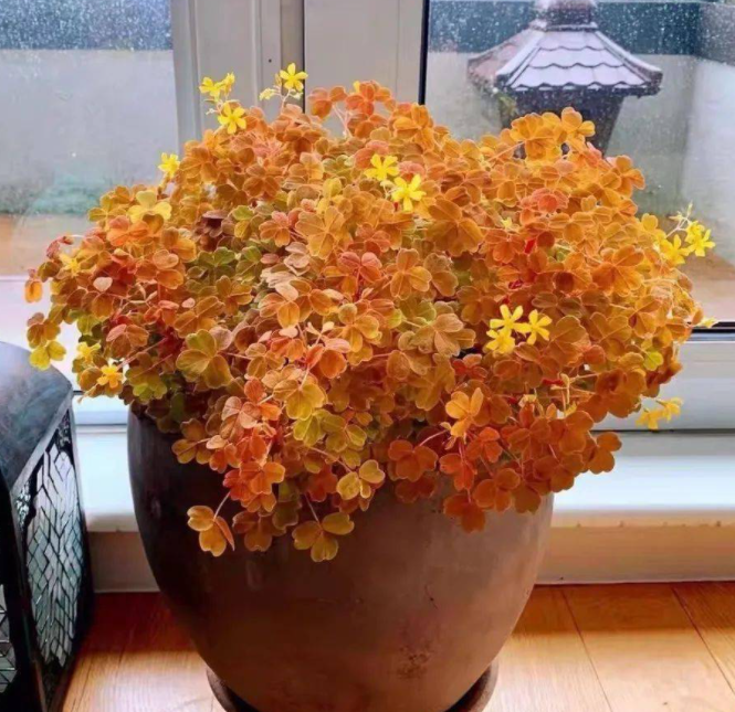 比如在深秋到早春这段时间,建议保持全日照环境,光照充足,早晚温差大的环境里,熔岩酢浆草的叶片颜色会更加绚丽丰富。而在缺少光照,温差小的环境里,熔岩酢浆草的叶片颜色就没那么丰富好看,甚至会变回绿色。