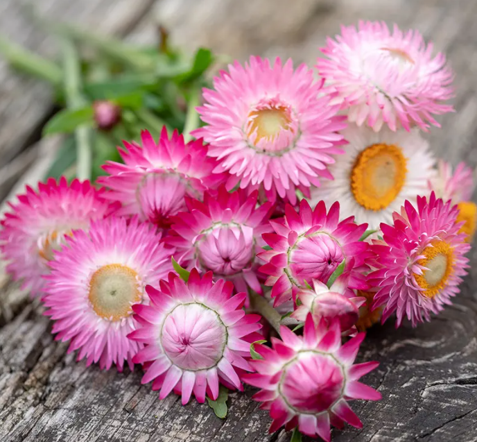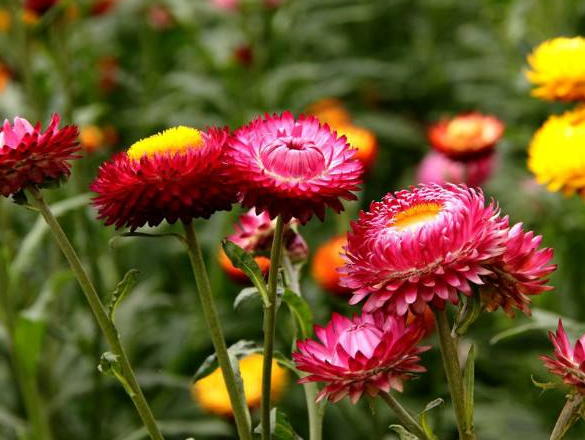 麦秆菊也叫蜡菊,是多年生草本植物,原产自澳大利亚,在欧美栽培广泛,麦秆菊不仅花色艳丽,而且花期超长,花朵干燥后,花色仍能保持鲜艳而且长久不褪,是制造干花的良好材料。