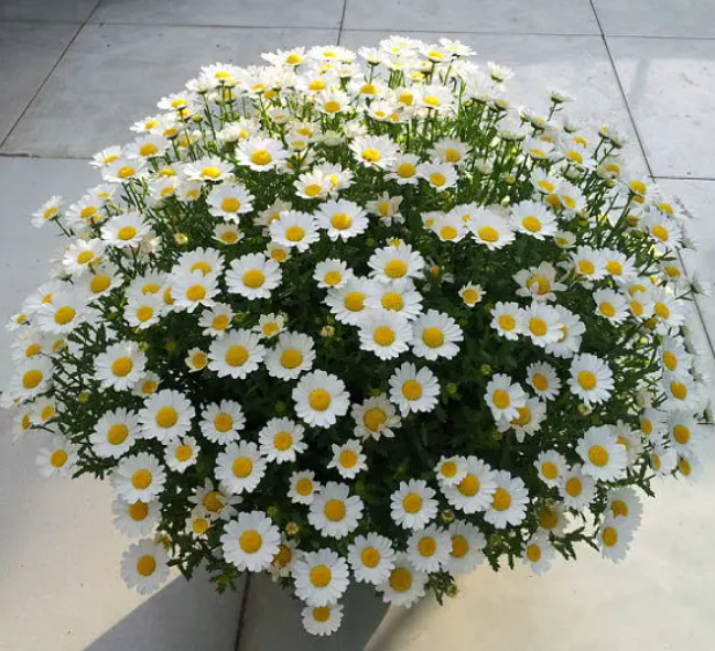 喜欢清新文艺田园风的花友,蓝妖强烈推荐您养白晶菊,因为它太好养了,而且特别爱开花,即使是新手花友,也很容易养出爆盆的效果。白晶菊植株低矮,花朵挺立,喜欢阳光,它的花语是:向往阳光、神秘高雅,天真无邪。