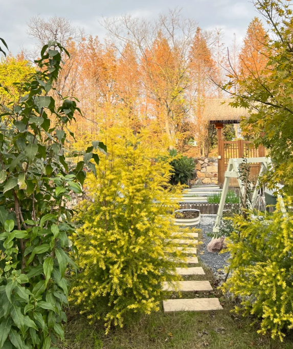 黄金香柳喜欢光照充足,光照充足的时候,黄金香柳的叶片是金色,秋冬季的时候,往往会呈现出黄绿渐变色,非常漂亮,可以剪下枝条做切花,也可以自然风干后做干花,“一半夏天一半秋天”别用一番意境。