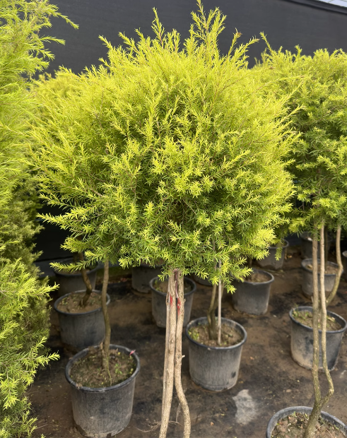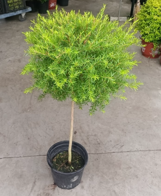 黄金香柳是常绿乔木,地栽的话,可以长到七八米高,盆栽的话,可以通过修剪来控制高度,黄金香柳非常耐修剪,常常会修剪成球形,会棒棒糖造型。