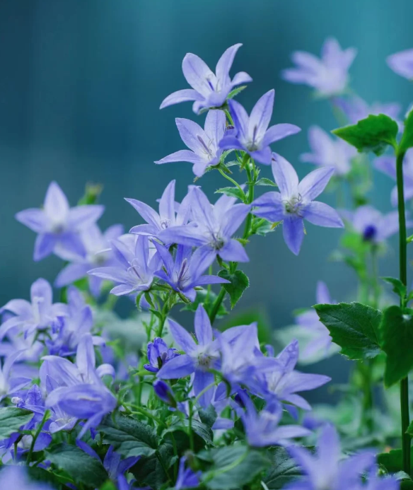 垂吊风铃草对光照的要求不高,能保持半日照就可以正常生长开花,所以在阳台上也是可以养的。用悬挂盆养,或者花盆放在高台上,开花时,蓝色的小花像瀑布一样倾泻而下,随风摇曳,想想都美。