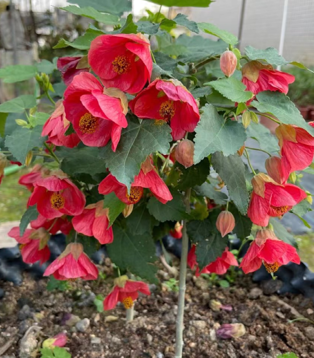 盆栽花卉由于根系生长空间小,浇水频率高,一般要求盆土疏松透气且肥沃。悬铃花长势旺盛,花期长,对肥水的需求相对会更多一些,盆栽时建议用通用营养土,加入1/5的发酵有机肥混合均匀后种植。