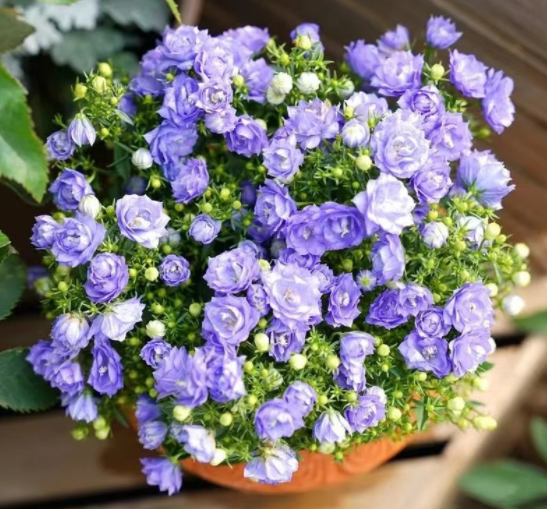 重瓣丹麦风铃草,秋冬季备受花友喜爱的盆栽花卉,因为它的颜值真的很高,淡蓝色或白色花朵,看上去鲜切飘飘,而且重瓣丹麦风铃草非常耐阴,很适合室内盆栽观赏。