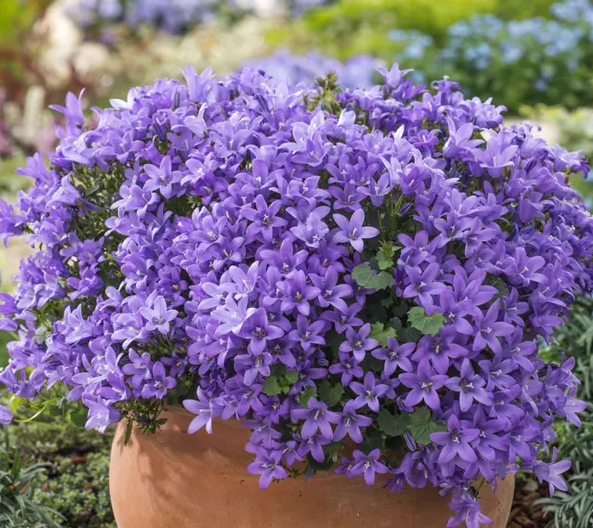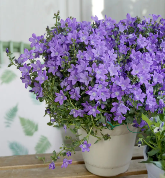 网红花卉丹麦风铃草, 之所以能成为网红花,是因为它出色的爆花能力,轻轻松松就能开出见花不见叶的效果。而且它株型紧凑,很适合阳台盆栽观赏,花期可以从秋季12月一直持续到来年6月份。