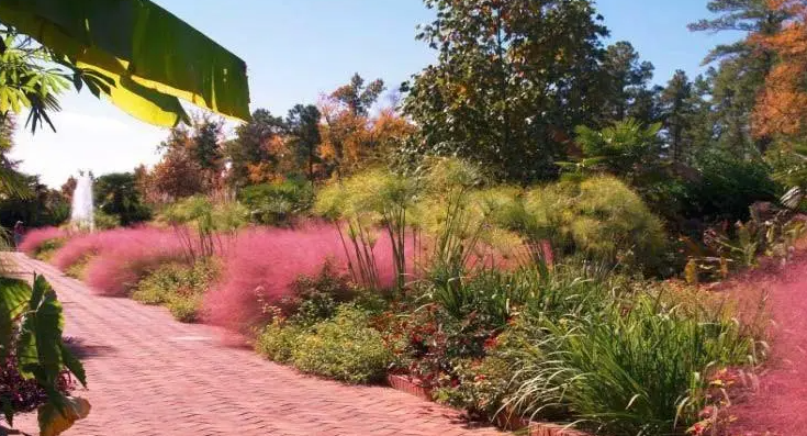 粉黛乱子草也叫做毛芒乱子草,是从美洲引进来的观赏草品种,多年生,喜欢光照,也可以耐半阴,耐寒也耐热,管理粗放。粉黛乱子草每年9-11月开花,粉色的花穗,如云雾一般,非常具有观赏性。