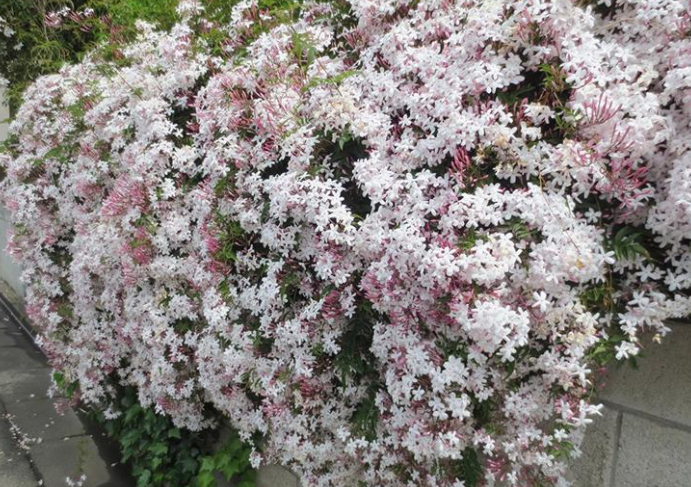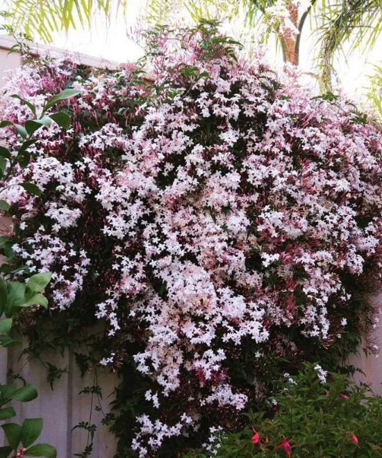 有没有什么花打理简单,开花多,能轻松长成一面花墙呢?答案是,当然有,它就是素馨花,也叫做多花素馨。