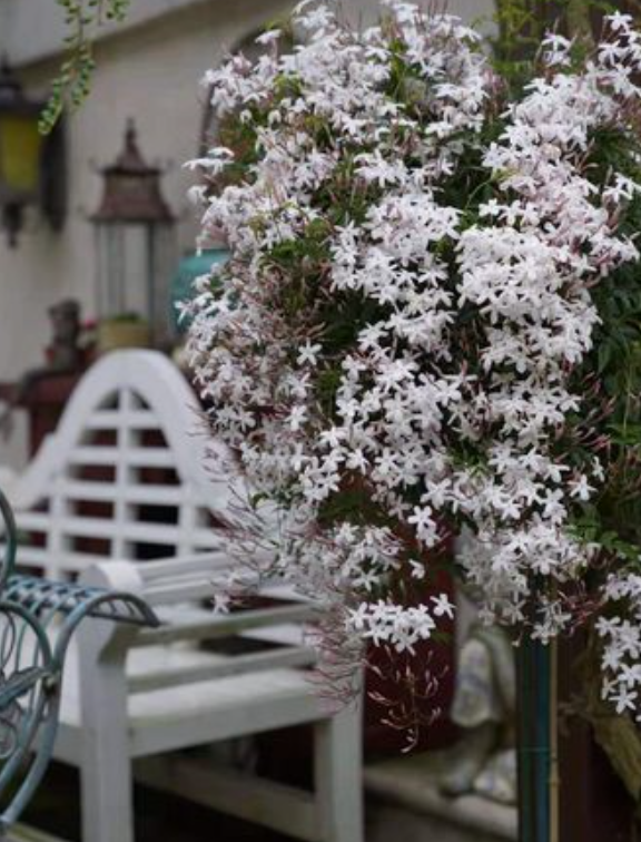 素馨花是大型爬藤植物,植株可以长到10米,生长量非常惊人,所以如果是盆栽的话,建议经常修剪控制株型。