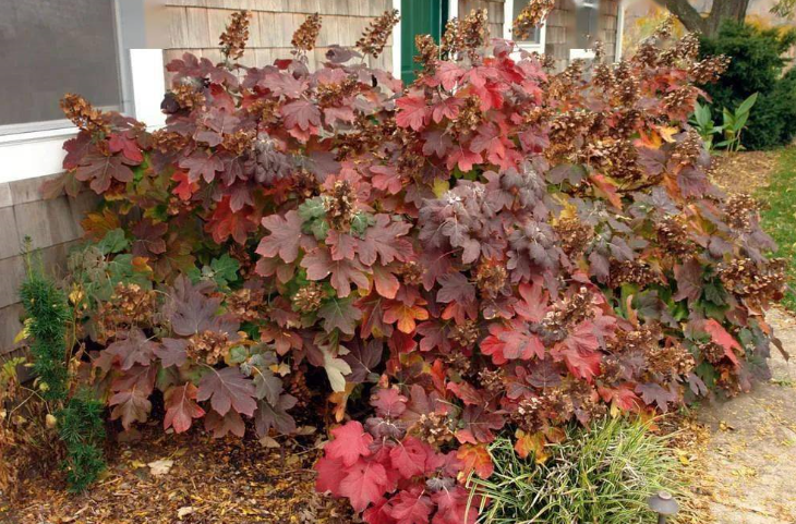 栎叶绣球的花期在6-10月,深秋叶片变成红色,在寒冷的北方地区,冬天会落叶,不是很冷的地区,则从深秋一直到5月,都处于红叶期,一年四季,有花的时候看花,没花的时候,可以赏叶,非常适合在庭院种植,盆栽也是可以的。