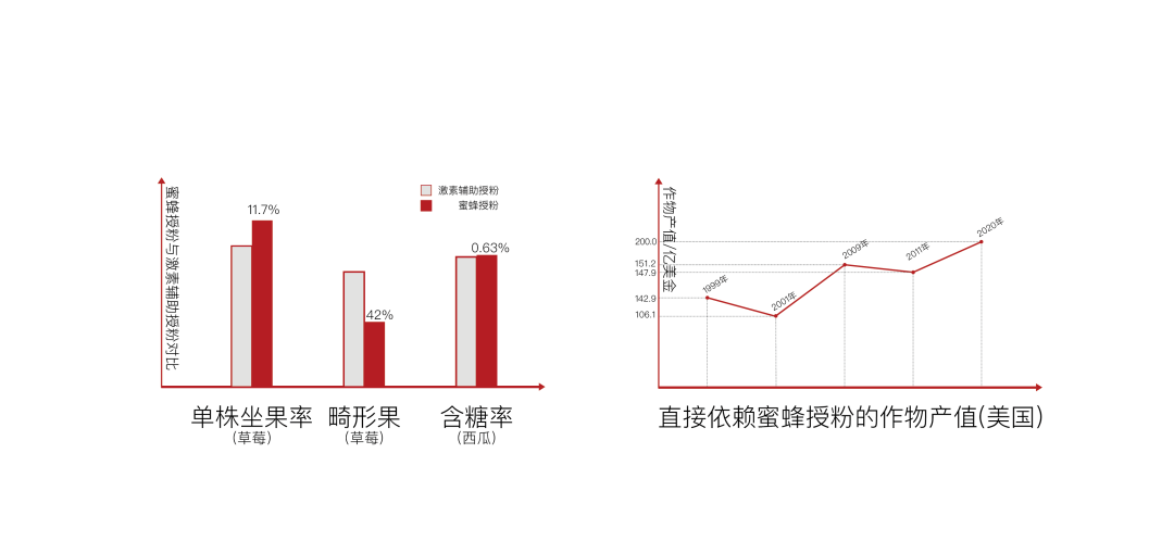 蜜蜂为我们三分之一的食物授粉,并对维持地球生态系统起着至关重要的作用。在供人类食用的作物中,约有84%需要蜜蜂或其他昆虫授粉来提高产量和质量。蜜蜂授粉不仅能够提高水果、浆果或种子的产量,而且还可以改善产品的质量。