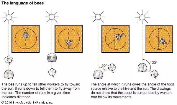 蜜蜂的舞蹈语言是动物界中一种独特的象征性交流形式。例如,当蜜蜂发现一棵开花的樱花树时,它会返回蜂巢。在那里,它通过舞蹈告知其他蜜蜂食物源的位置以及食物源的距离。