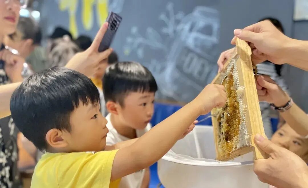 老师们拿着标本带着大家要去蜂园了,还有更多精彩内容等着与小营员们现场一起互动,和蜜蜂一起跳探戈,你敢吗?
