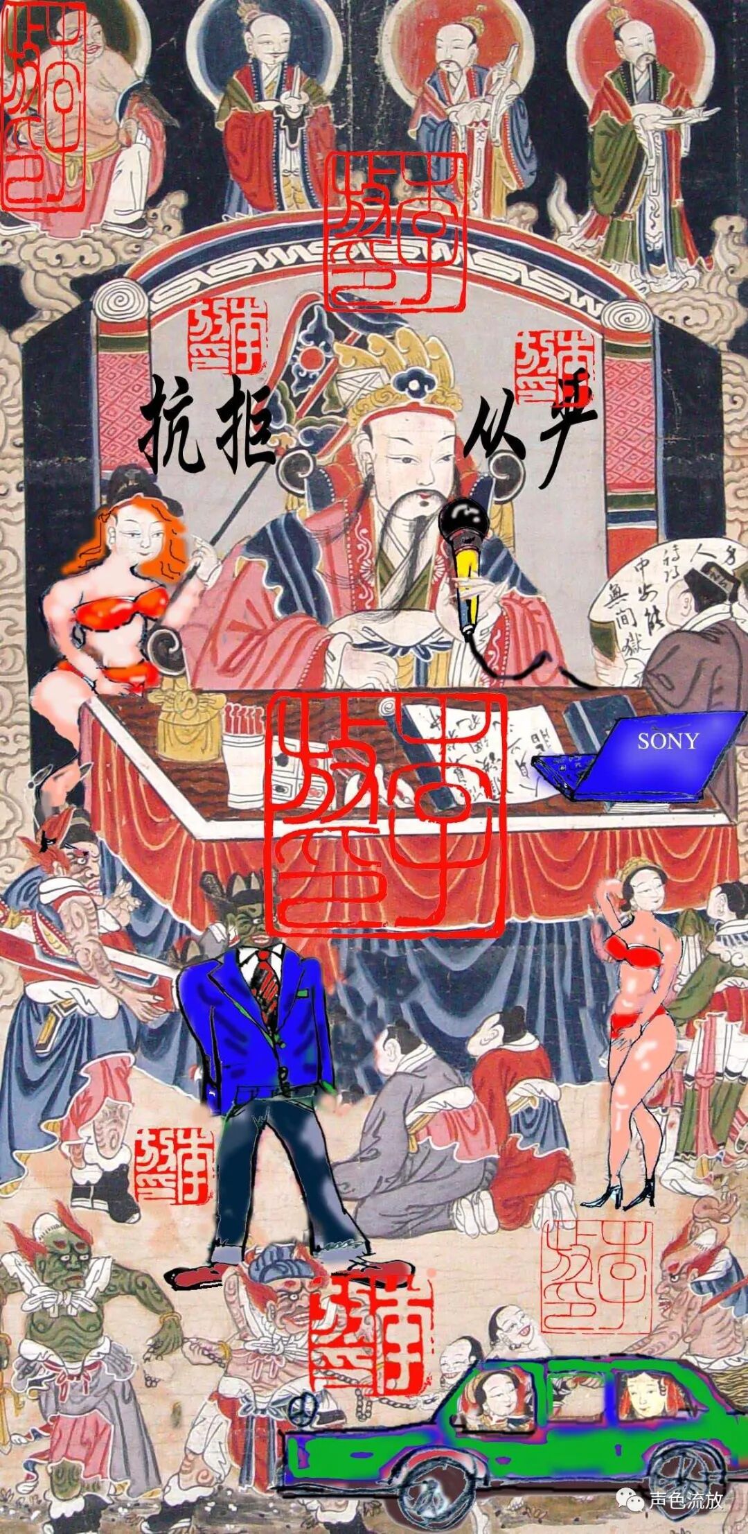 画廊老板贩卖着鲁智深砸坏的金刚,跑到光头们的工作室背书,后现代理论在前现代使用,破牛仔裤上的秧歌舞。