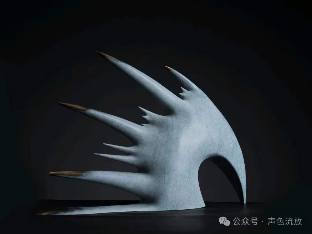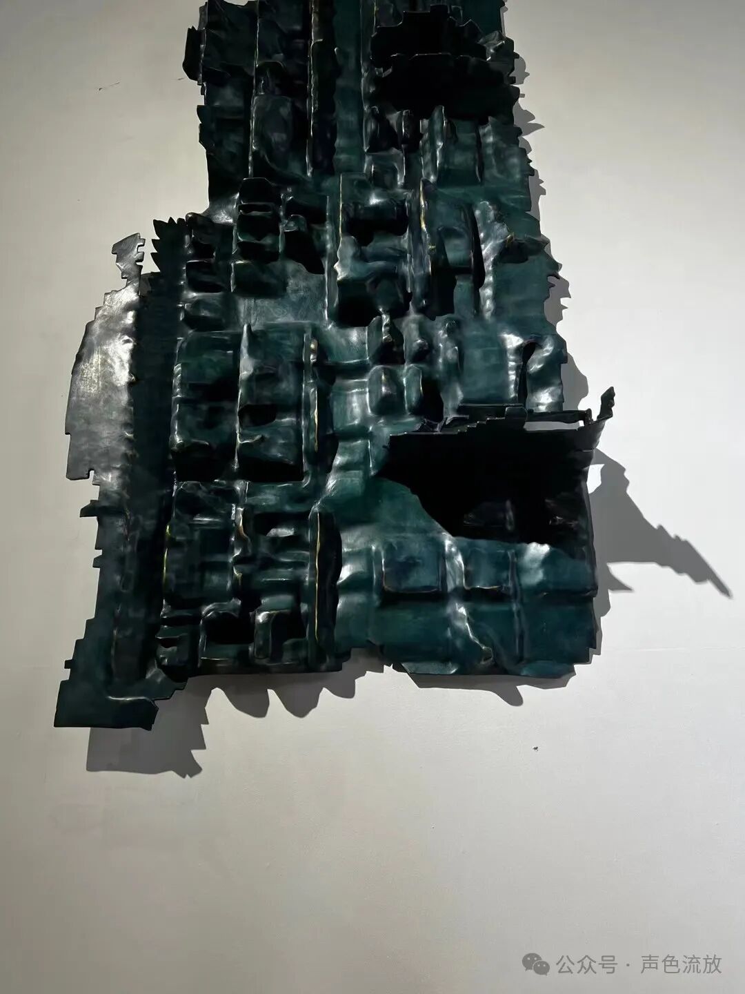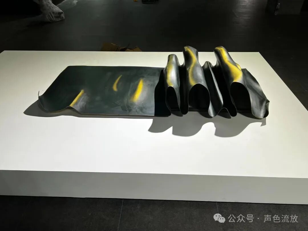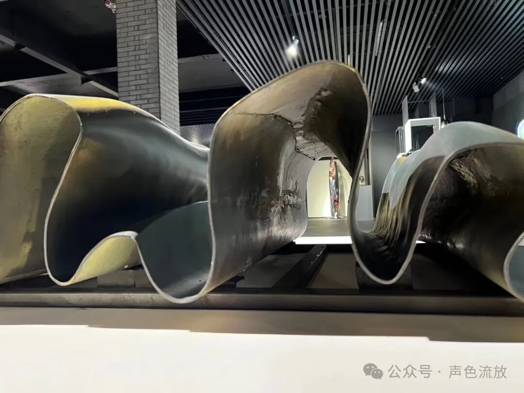 近水楼台先得月,在我的作品附近,有两件雕塑作品引起了我的注意。这是年轻艺术家许尔纯的作品。初见这作品,似是两件抽象的现代雕塑,形式感很强,很漂亮。但是时间久了,我发现这些作品还存在着抽象以外的某种东西,给人带来的感觉耐人寻味。