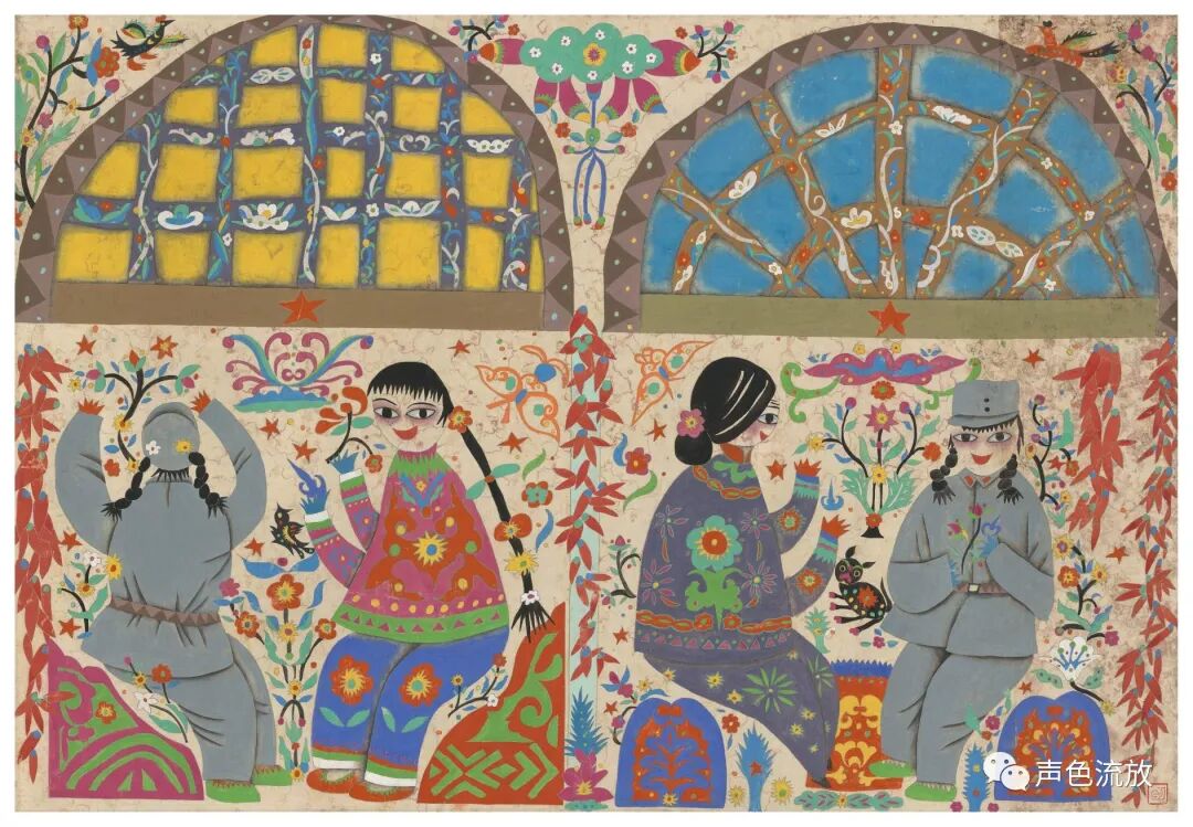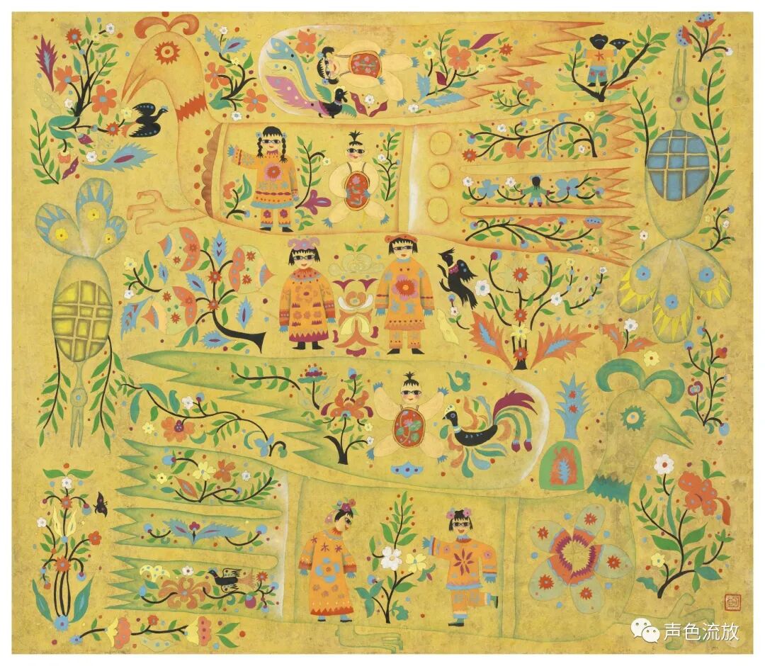 有段时间我迷上了天人合一,开始锻炼习惯性装逼,开始看啥都空灵,所以那个时期,我对明可的画真不感冒,觉得是瞎鸡巴搞,是嘛,气韵生动呢?如来神掌呢?唐诗宋词呢?九阴真经呢?淡泊明志呢?天王盖地虎呢?啊?这个,太不像话了嘛。前不久,我偶然在一个链接上,看见了明可几张在学校画的老画,勾起了一点记忆,这些画是用国画工笔的技巧,使用了一些剪纸的造型方法,表现了一些很现代的东西,换个眼光来看,着实相当牛逼。