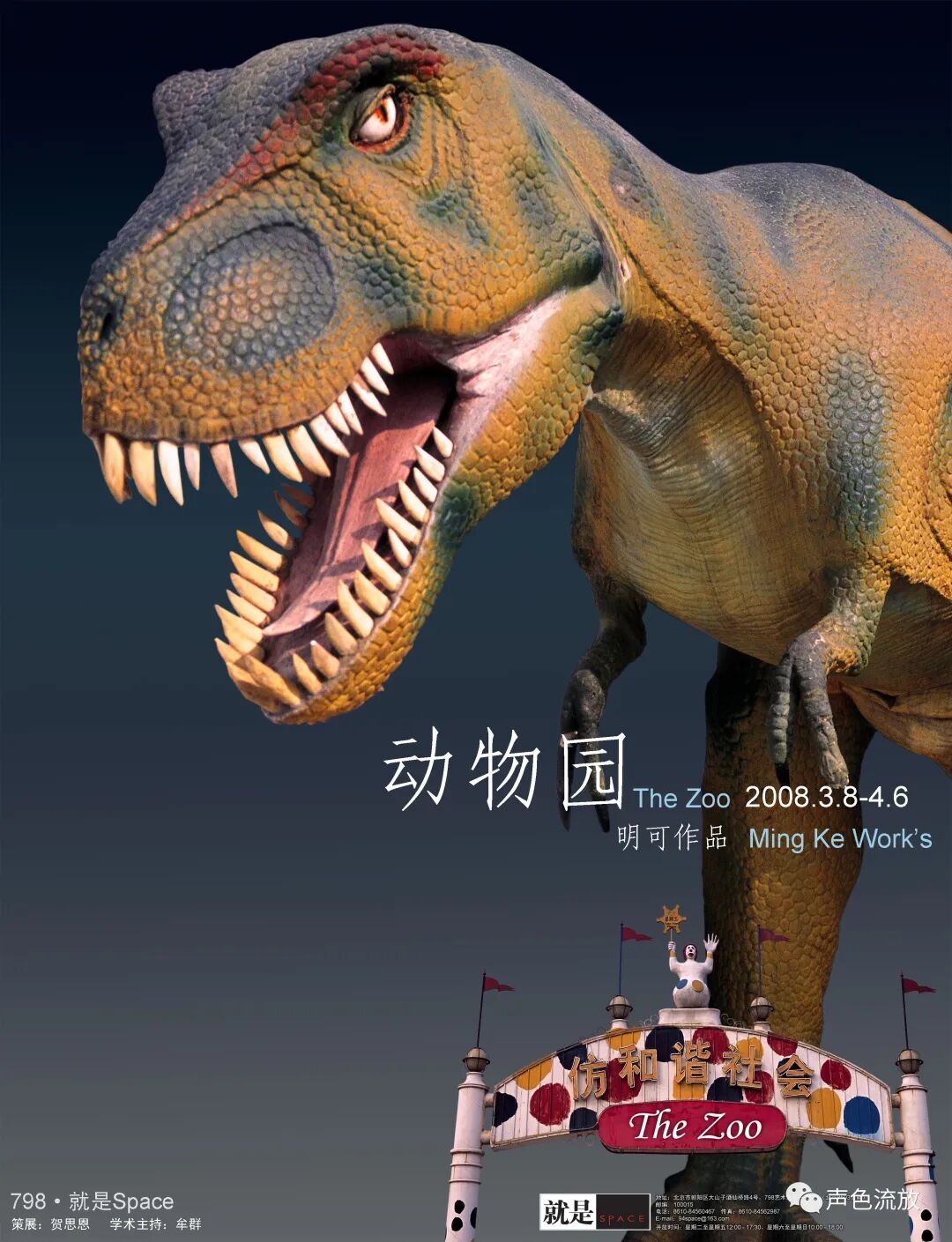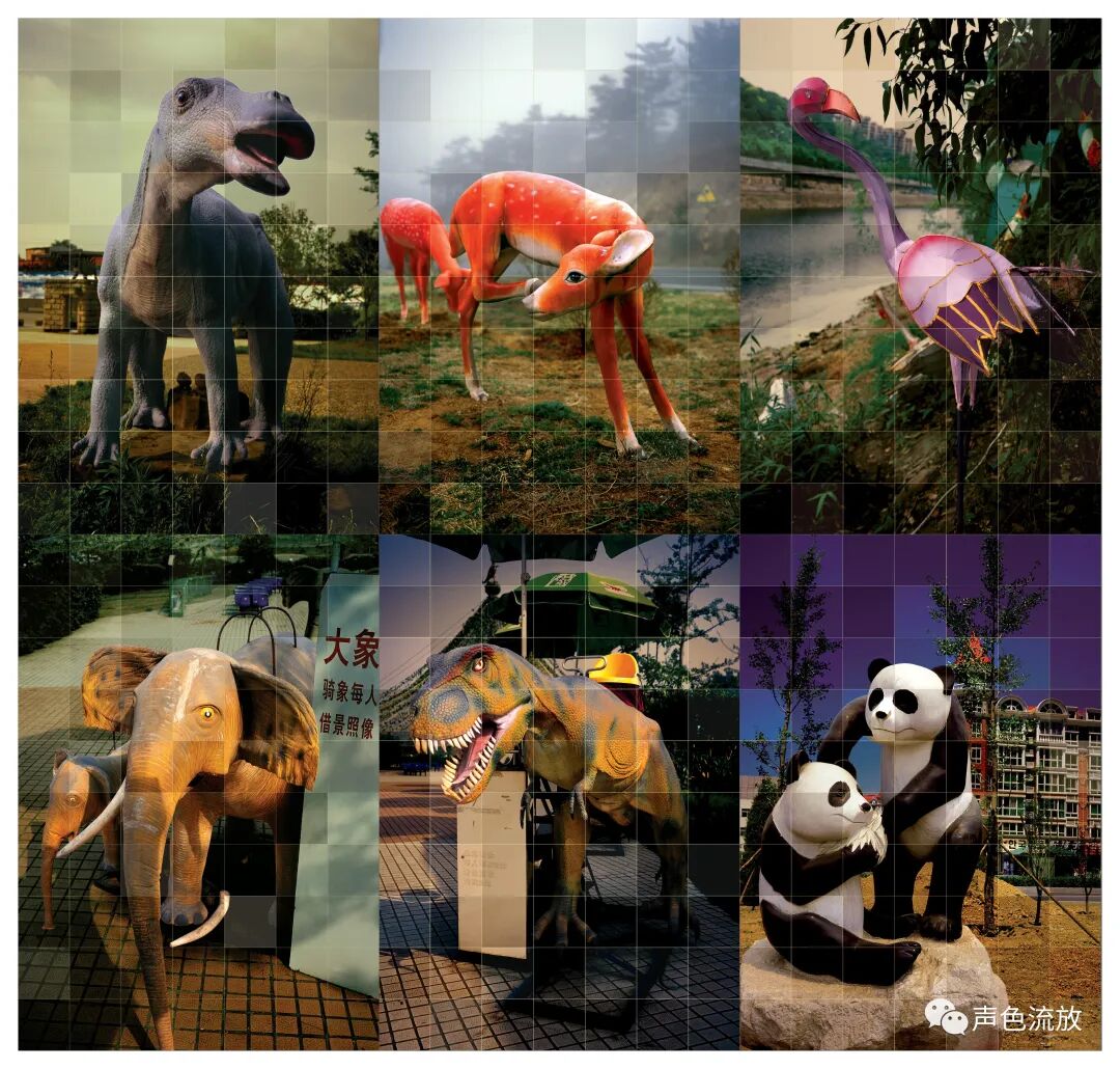《动物园》是明可2008年在北京798做的另一个展览,这批作品也是明可采用摄影方式完成的图像作品中,我最喜欢的作品。大概在2006年或者2007年,明可给我说他拍了一些假动物的相片,就是那些在街头各种场所经常出现的动物题材的假冒伪劣雕塑产品。前几天我还在朋友圈发了一张古代诗人的雕塑相片,配了句文字:老板,给个馍吧。这个雕塑,感觉应该是想塑造诗人右手端一杯酒或者茶,左手向前挥,表现一下诗人的豪情,但怎么看,也像是一个要饭的,右手端个碗,左手伸出去想讨个馍。我不知道作者的真实意图,如果是想表现豪情,显然这个作者压根儿不知道啥叫豪情,如果是想表达诗人艺术家的现实处境,那到是真牛逼,哈哈。当时明可给我说这事情,我心里一动,因为我也经常看到那些假冒伪劣的动物,也拍过几张,但没有想到把它们做成作品。当然,把拍照变成作品,需要一个非常复杂的过程。