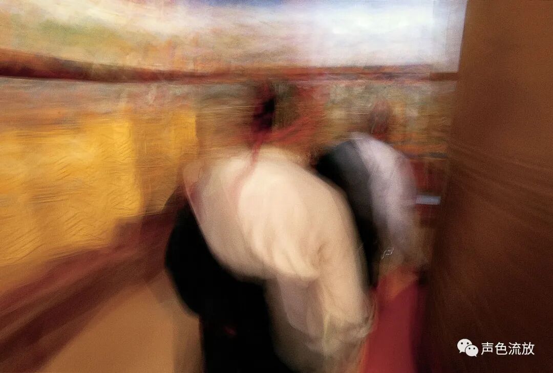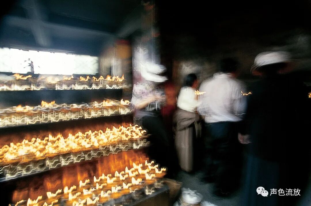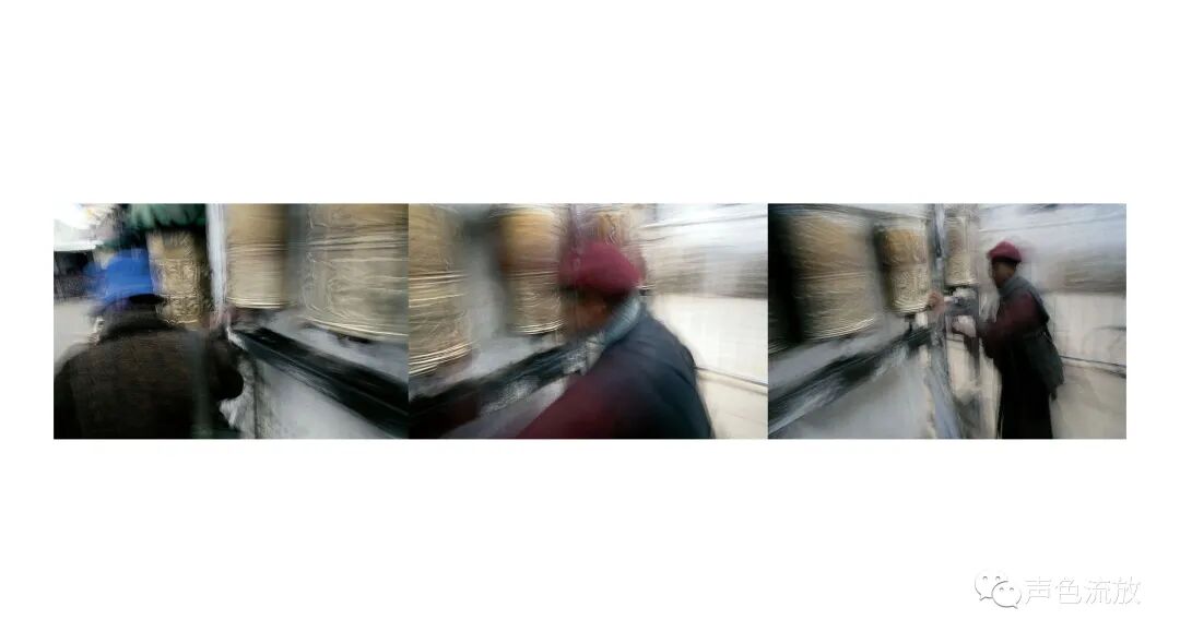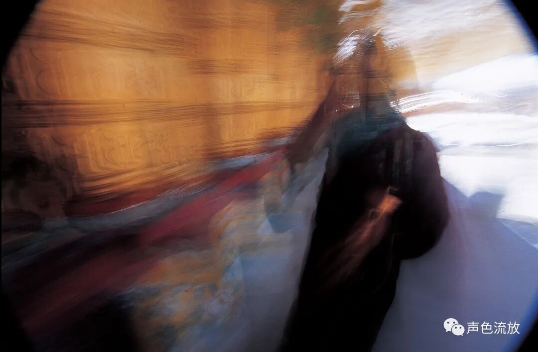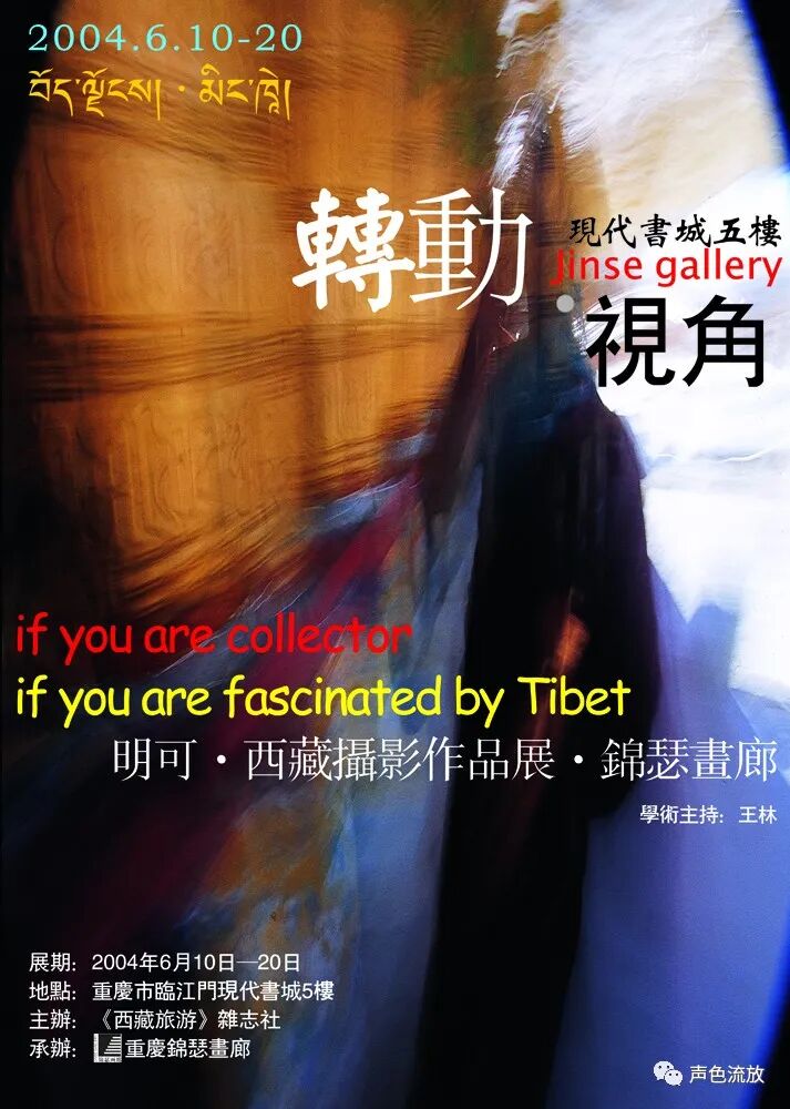 2004年,明可的个展 《转动·视角》,展出了这些作品中的一部分,就像刚才说的那样,这些作品不是简单的风景照或者地域风俗画,而是透射着某种感知和体验。我看到的一些作品,并非是真的模糊,而是由慢快门曝光所产生的光痕,其实本来的影像是非常清晰的。与其说是模糊,不如说是一种动态,类似于某些物体迅速在眼前滑过的视觉效果,这是那些关于转经筒相片的精彩之处,提示着我们所经历的、看见的、感觉到的,都是一个不停运转着的过程,由一个轮回进入另一个轮回,无休无止。在画画的人里面,搞照片效果模糊影像最著名的肯定是里希特,但是里希特最主要的观念应该是用绘画再造摄影或者挑战摄影,同时以内容与现实发生关系。明可的这批作品,可以说是以摄影再造绘画,也就是说用摄影的方式去表达想用绘画表达的思想和内容,他并非是简单地拍摄自己看见的图像,而似乎是在拍摄他已经理解并且思考好了的某种图像,换句话说,相机就是他的画笔。与里希特相比,看起来很相似,其实是完全相反的两种方式。明可相当熟悉摄影器材和胶片的特性,对曝光的时间和光圈范围把握得非常准确,比如一些相片里主体人物与环境的虚实关系光影色彩等等元素恰到好处,静中有动,动中有静,产生的效果非常到位。