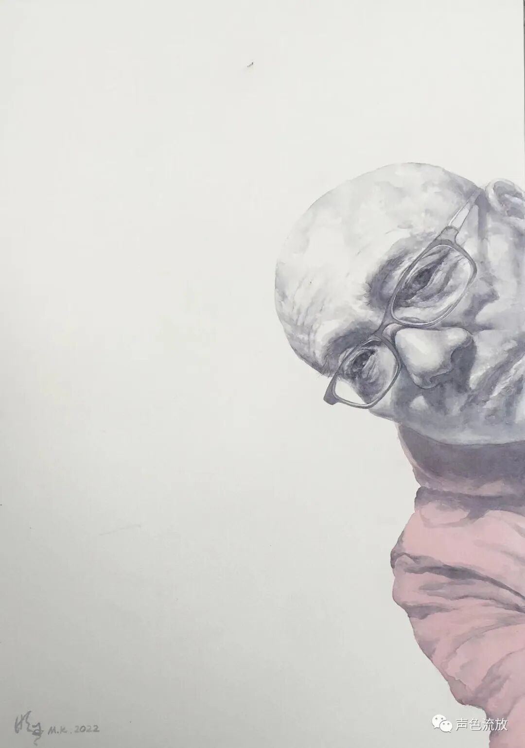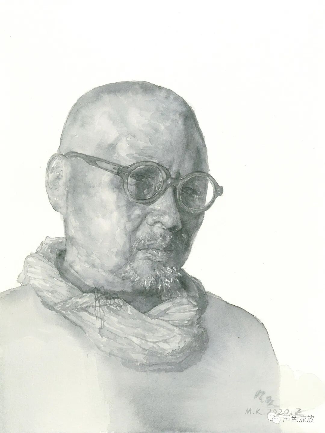明可的这批水彩肖像画名为《老板凳》,意思就是老炮,许多我都看过,都很出彩,2020年在四川美术学院八十周年校庆时作为校庆系列活动之一展出,得到了广大兄弟伙和同行以及圈外朋友的认可和赞扬。