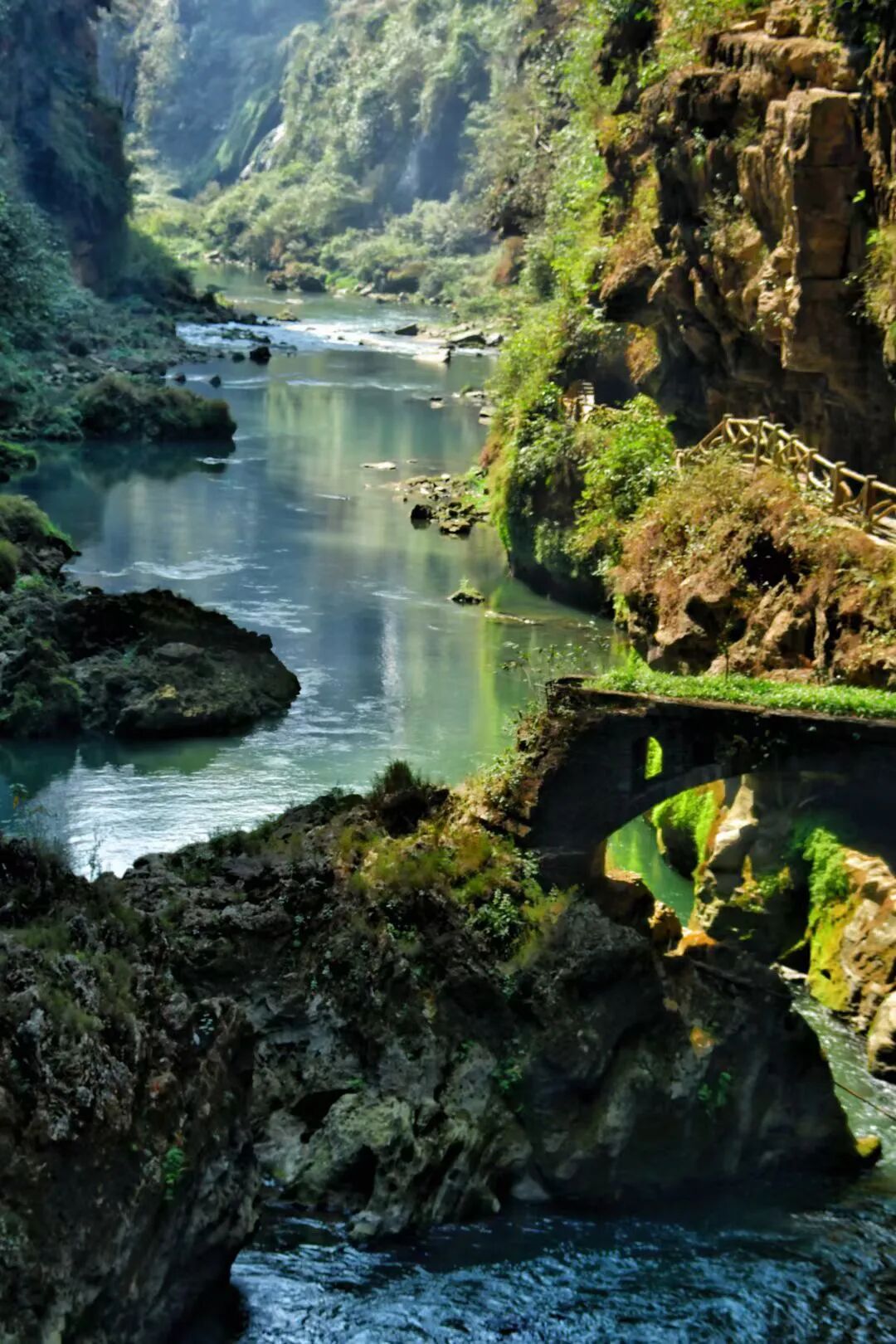 马岭河峡谷位于黔西南州兴义市境内,是国家级风景区。实际上是一条在造山运动中剖削深切的大地缝。马岭河峡谷是喀斯特多层次地貌景观的集中表现,谷内群瀑飞流、翠竹倒挂、溶洞相连……