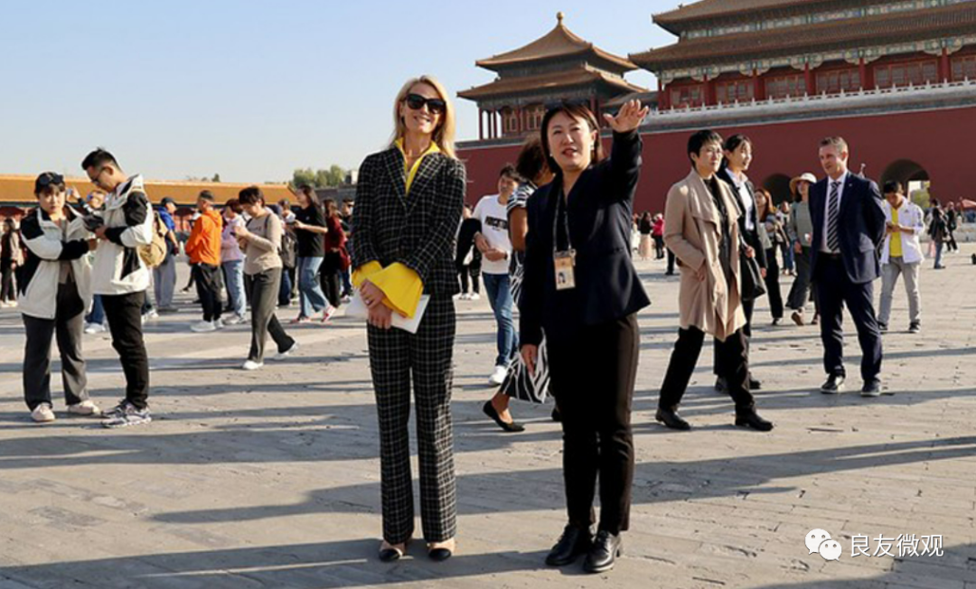 在此之前的上海之行中,纽森夫人的时尚造型同样令人难忘。她穿着一身棕褐色的紧身针织长裙,尽显高挑身姿,即使搭配平底鞋,也丝毫不减她的气场。她的自信和独特的时尚感使她在人群中脱颖而出,无疑成为一名行走的时尚标杆。
