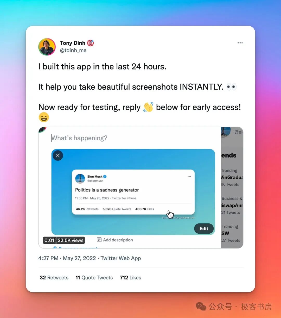 这也是为Twitter受众提供新鲜内容的好方法。我积极参与“公开构建”,在构建应用程序时分享了一切。
