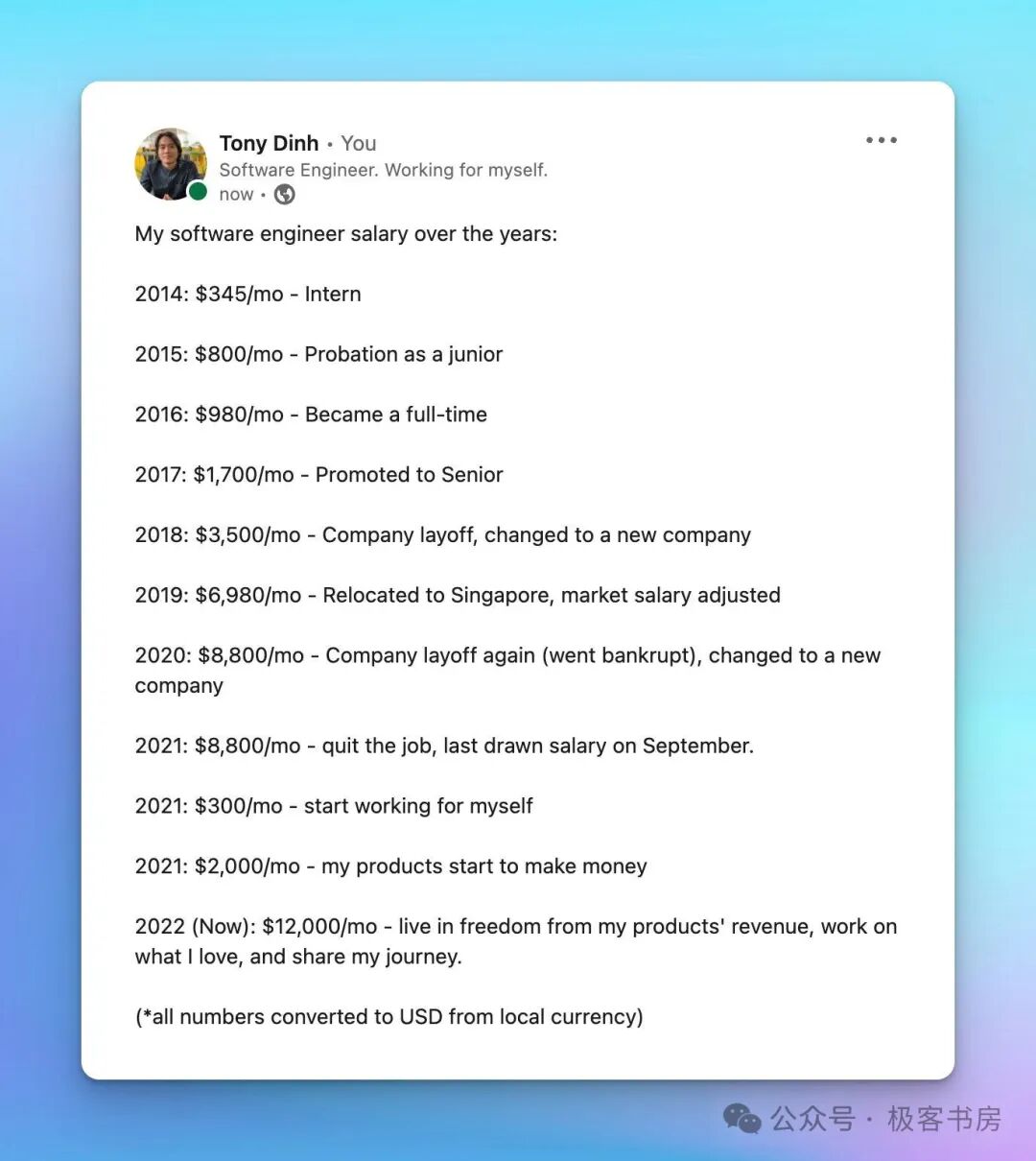 这就是我得到的第一美元。当时我还在新加坡的卧室里疯狂地跳跃(当时我还在全职工作)。