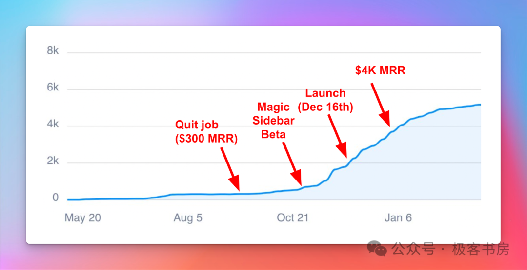 增长开始加速。我为Black Magic添加了许多新功能,最引人注目的是魔术侧边栏 - 一款用于Twitter的Chrome扩展,提供分析和CRM功能。