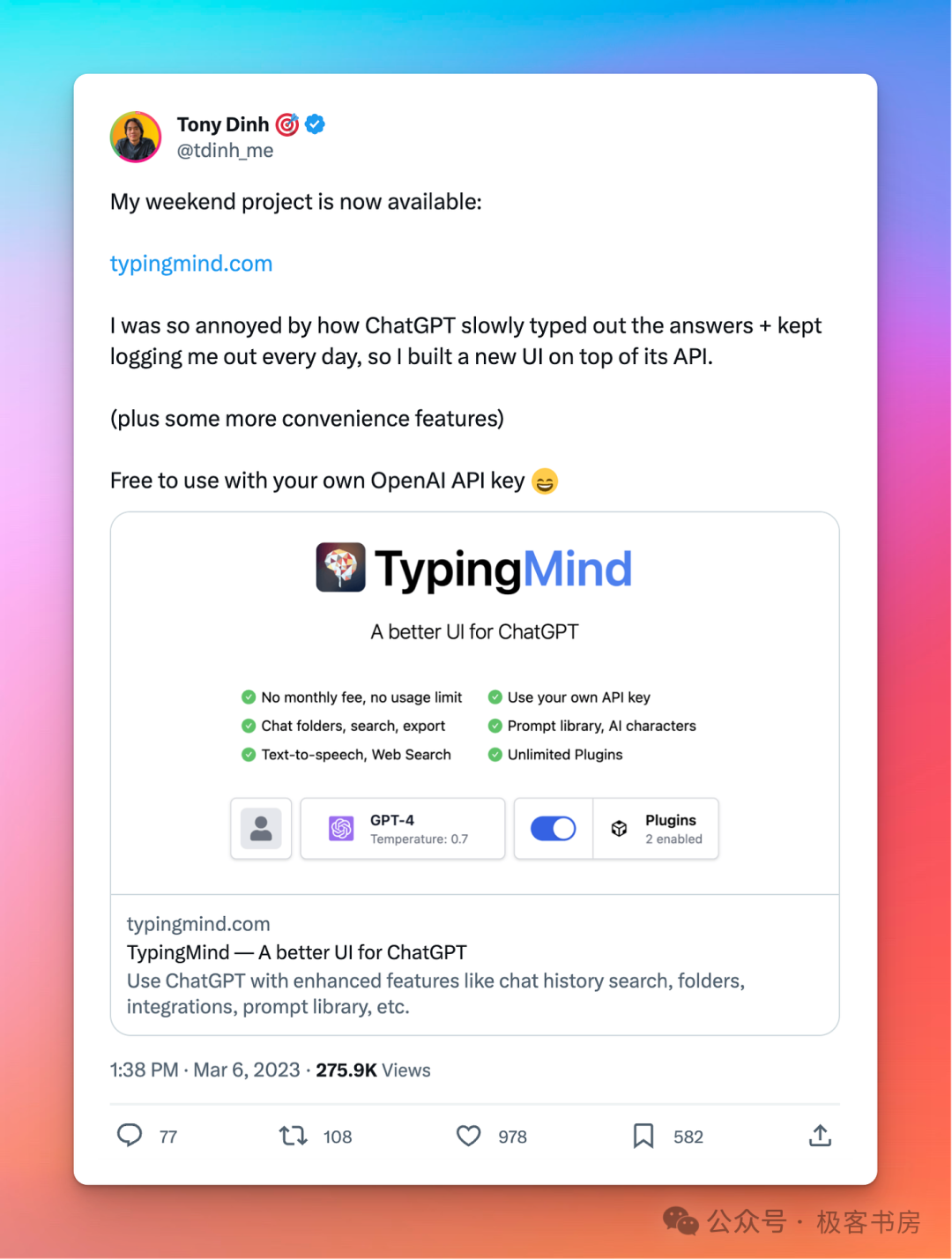 与此同时,我开始着手开发一个新产品:Typing Mind。