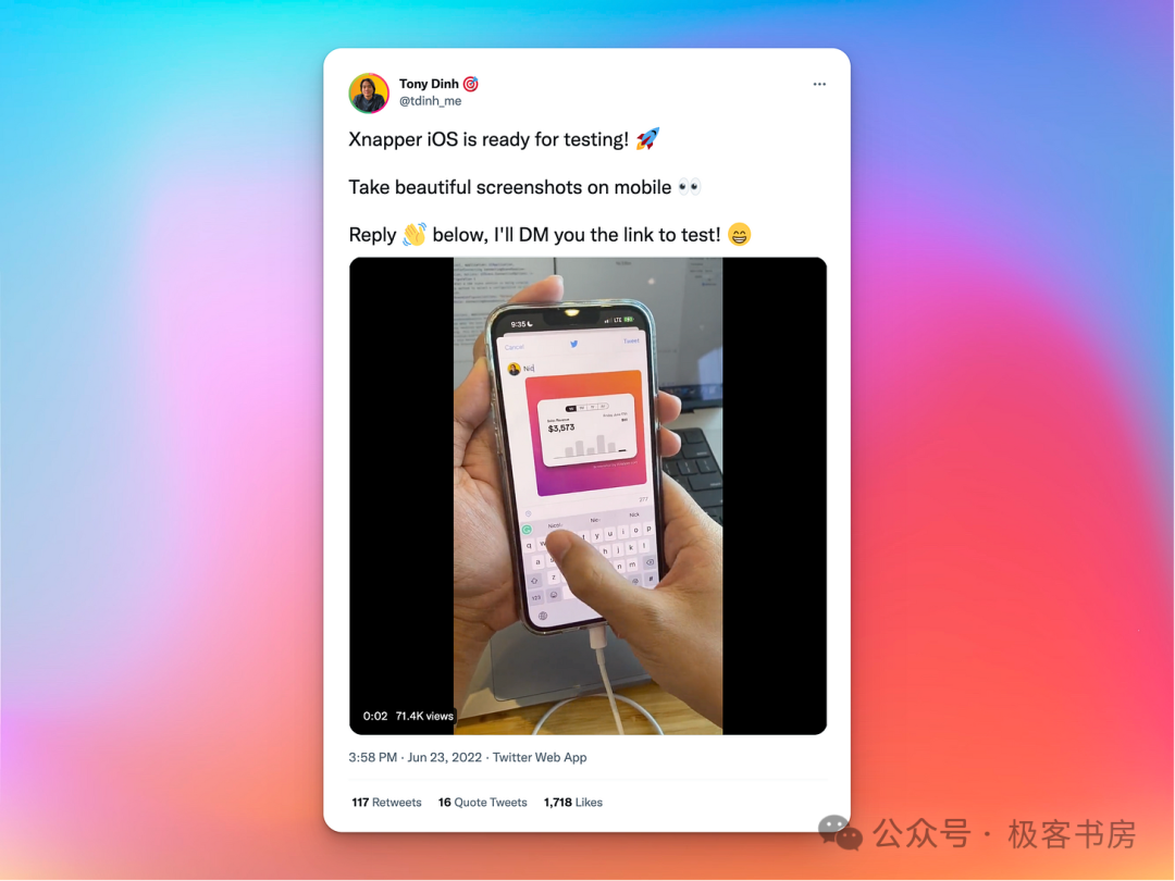 例如,这条推文展示了移动应用程序演示,获得了1700个赞!这几乎就像免费的营销: