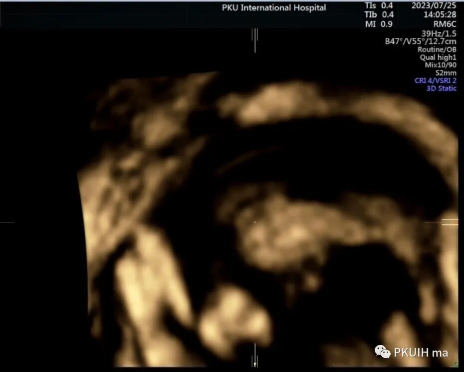 由于胎儿体位不好想着做一个三维,结果图像也不满意,只能等待胎儿仰卧或者俯卧观察正中矢状面了。