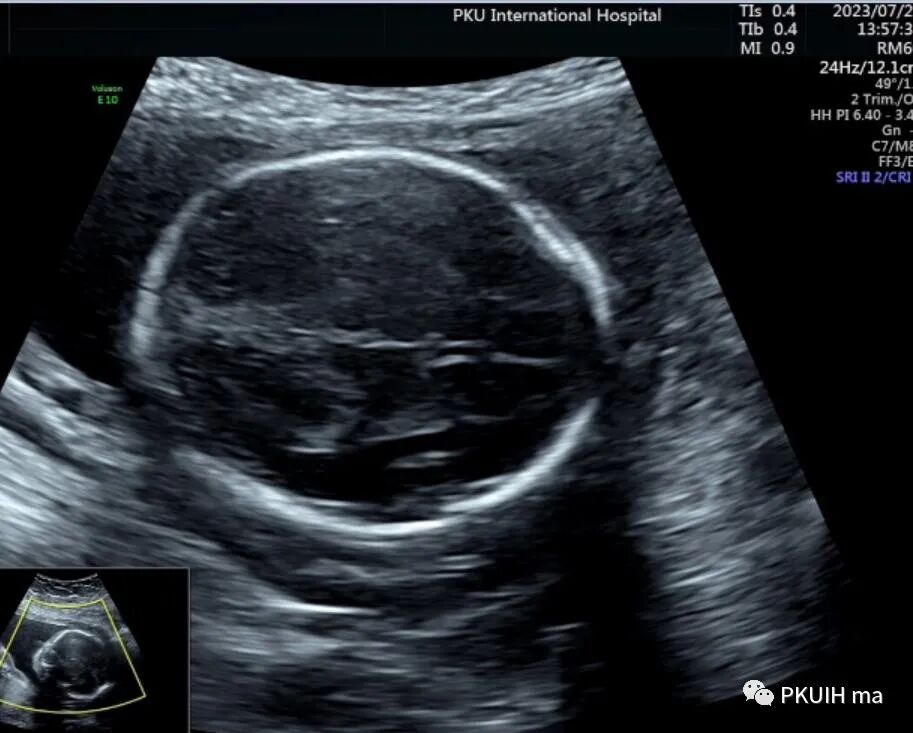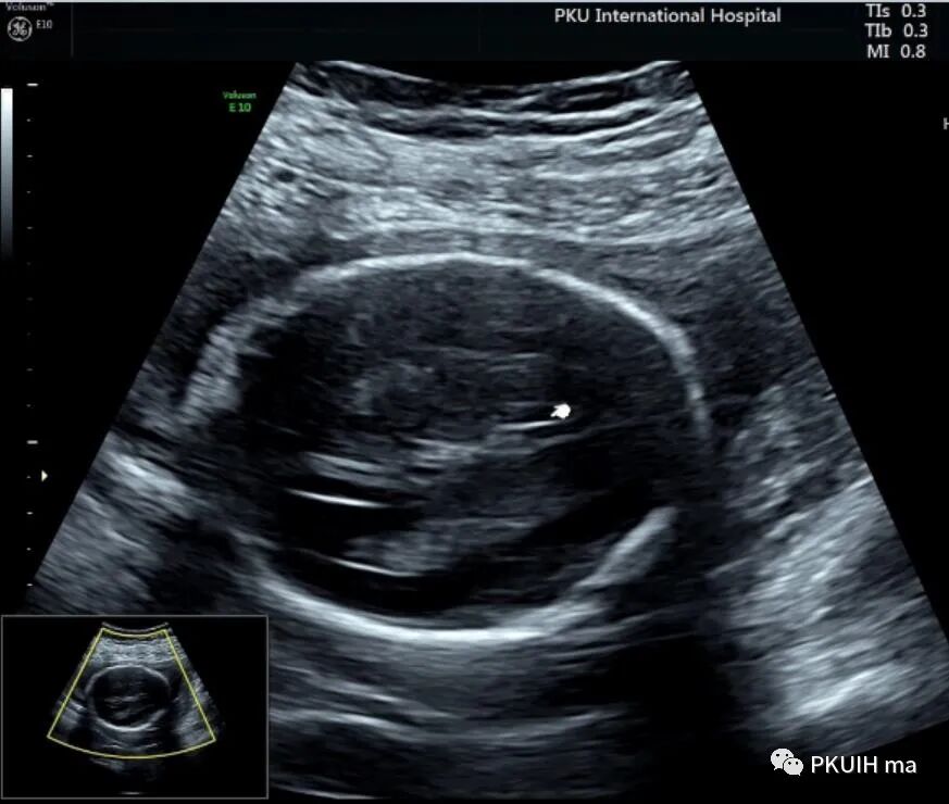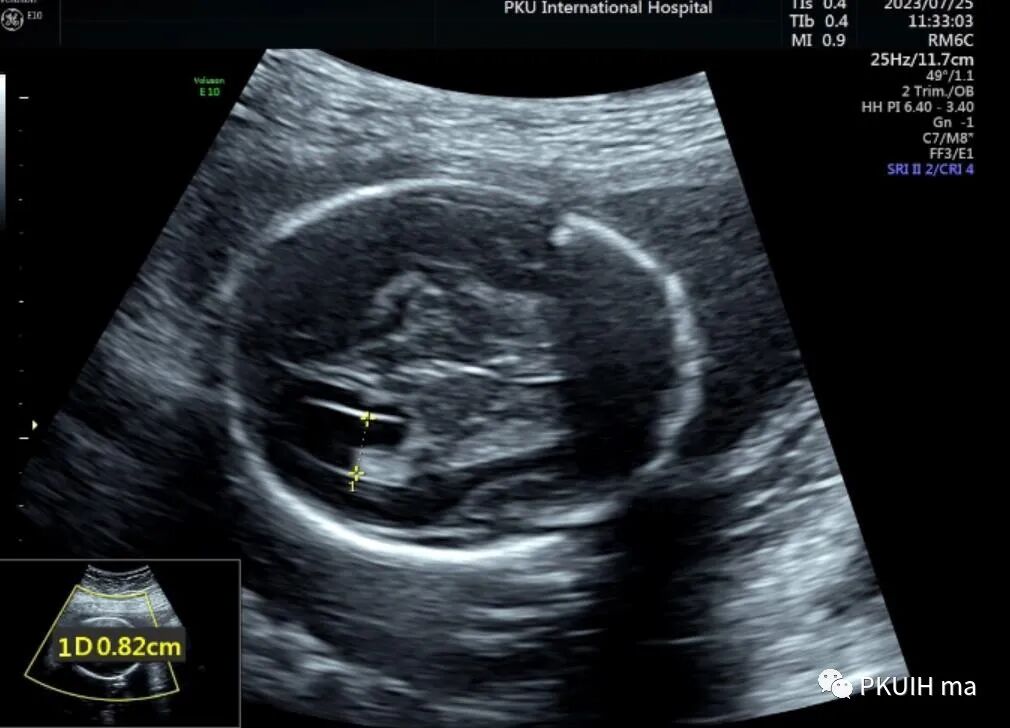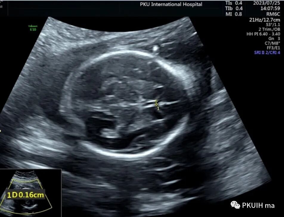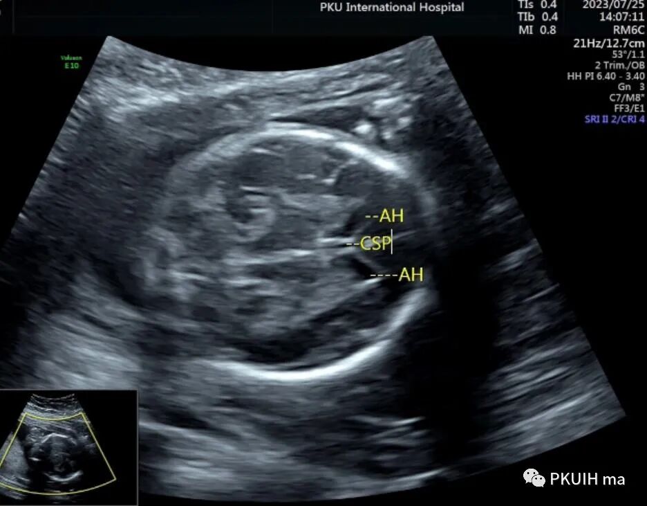 胎儿透明隔腔比较小(内径约1.6mm),透明隔存在,与侧脑室前角无相通,韦氏腔也比较小只有2.4mm