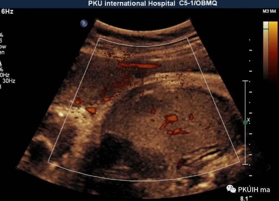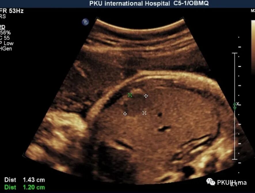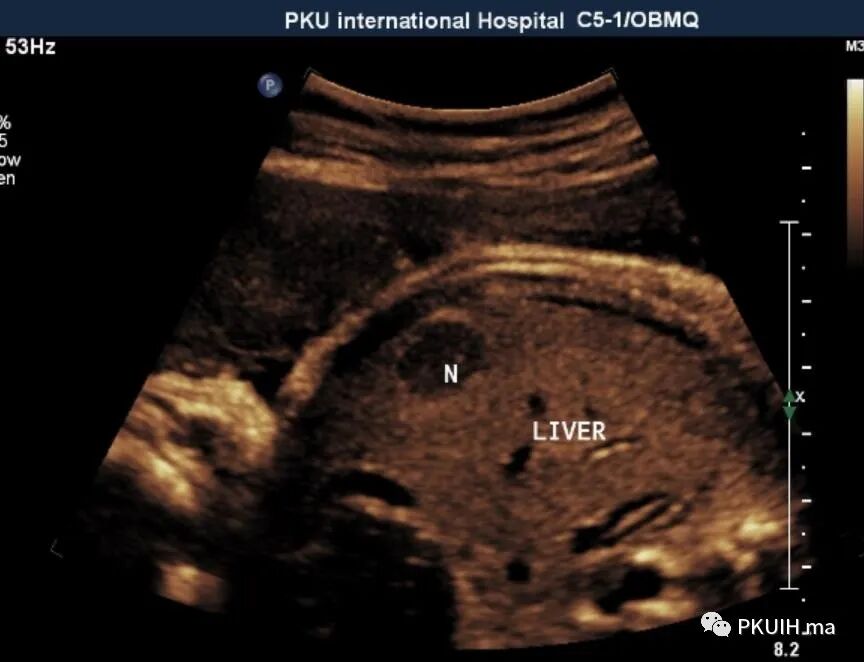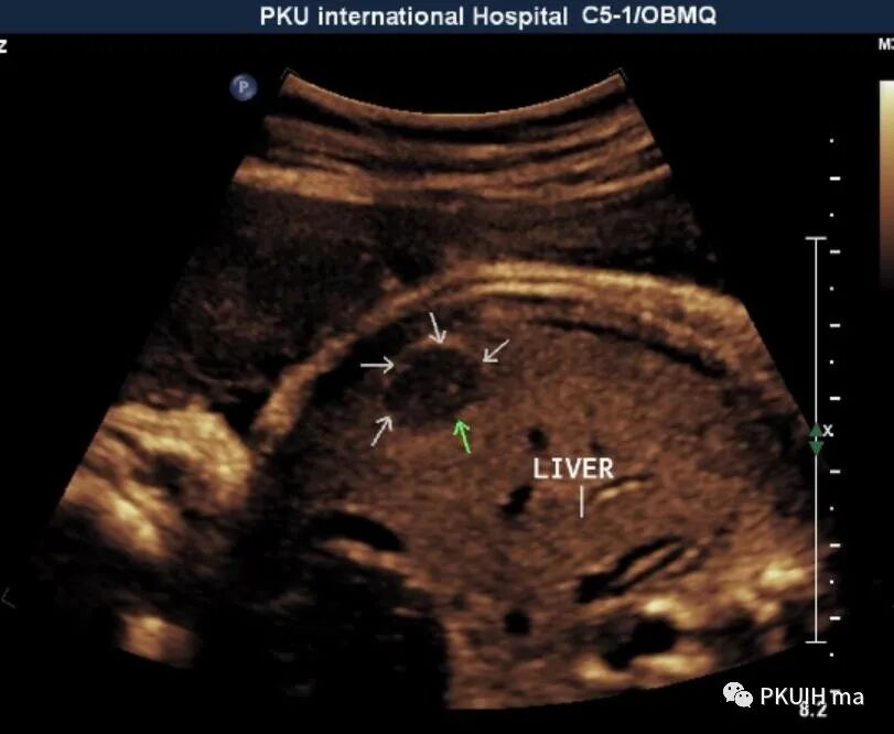 前两天看到一个孕40周的胎儿,突然发现肝脏内有个占位