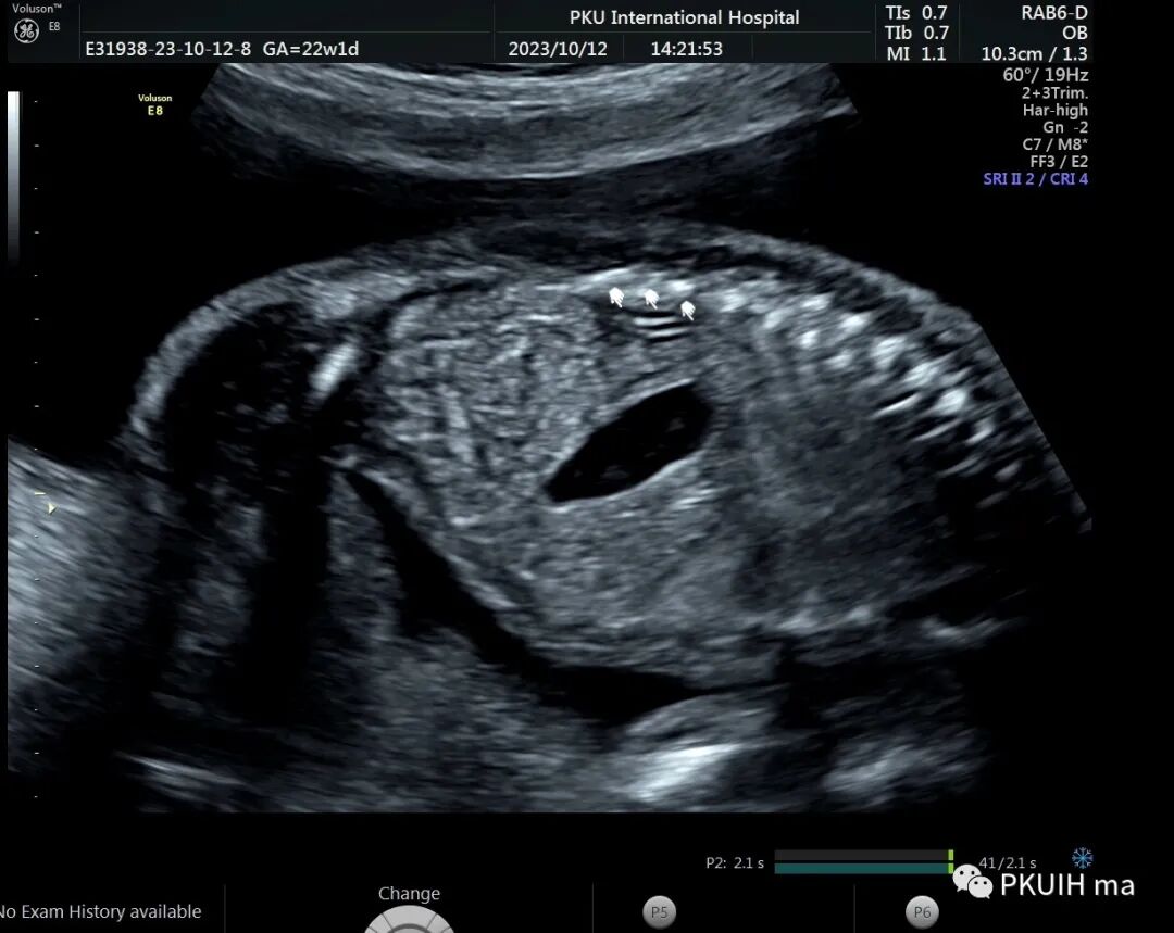 异位肾较常见,发生率约1/1200,目前产前确诊并不困难。异位肾最常见的就是盆腔异位肾,占异位肾的一半以上,往往合并发育不良。血供可来源于腹主动脉或髂动脉,部分可有血管迷走。超声诊断标准:1、一侧肾区内未见肾组织回声;2、同侧的肾上腺呈平卧征;3、对侧肾可增大也可正常;4、盆腔可见一发育不良或发育正常的肾脏回声;5、可合并其他畸形,比如输卵管发育畸形或者是Vacterl综合征。